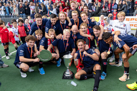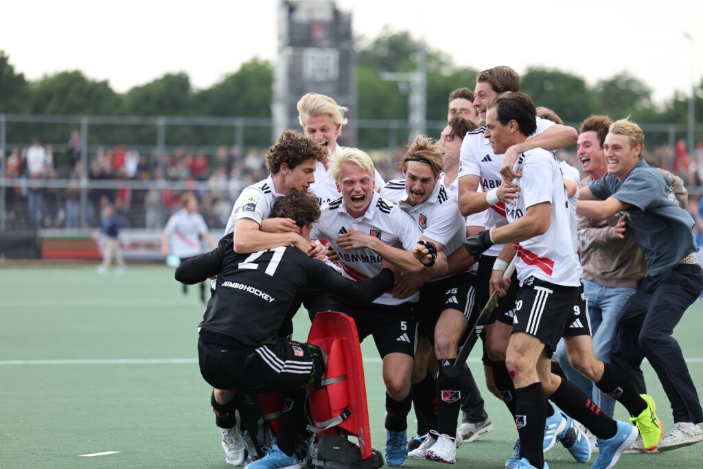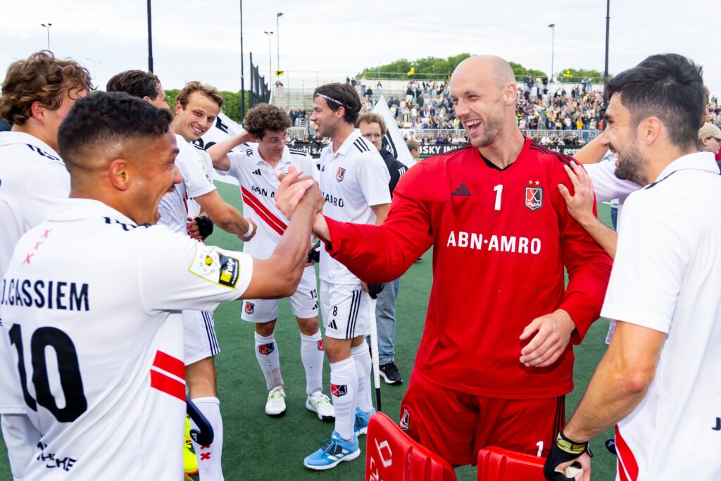 Spelers van Amsterdam vieren feest na winst van de landstitel 2025. Foto: Willem Vernes