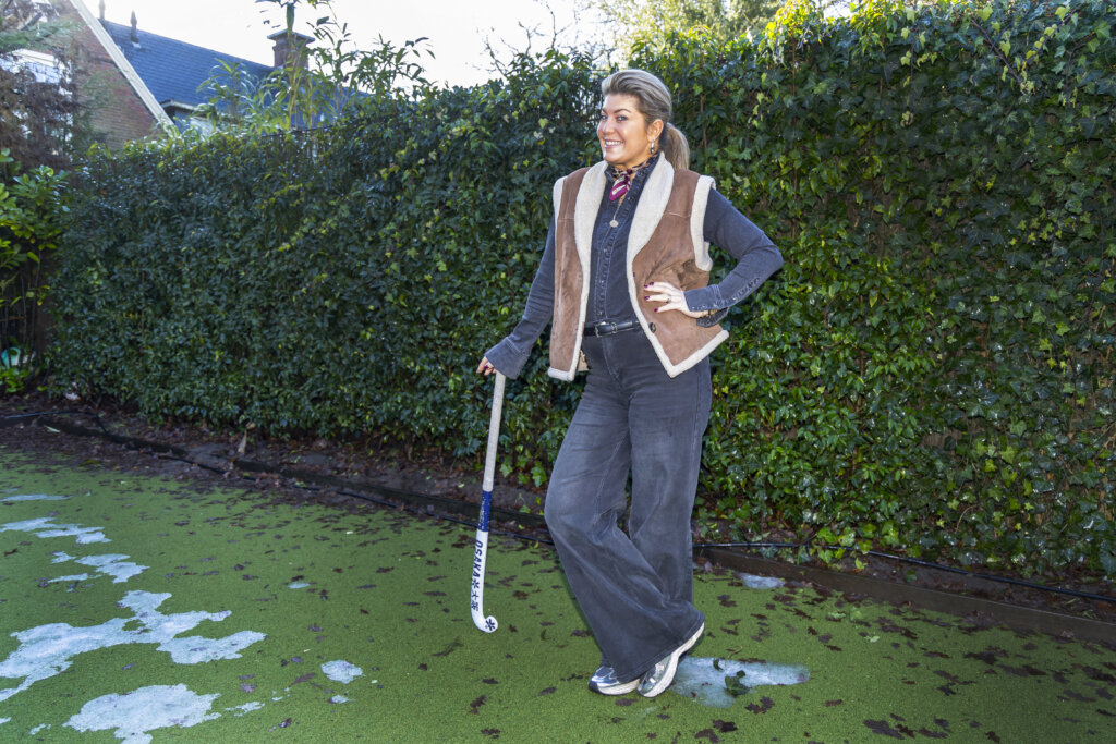 Ze mag dan wel geboren en getogen zijn in het Gooi, hockey is haar niet bepaald met de paplepel ingegoten. Nog steeds vraagt ze zich af hoe ze ooit in het hockey verzeild is geraakt. ‘Ik kan nog geen stick vasthouden’, geeft ze eerlijk toe.