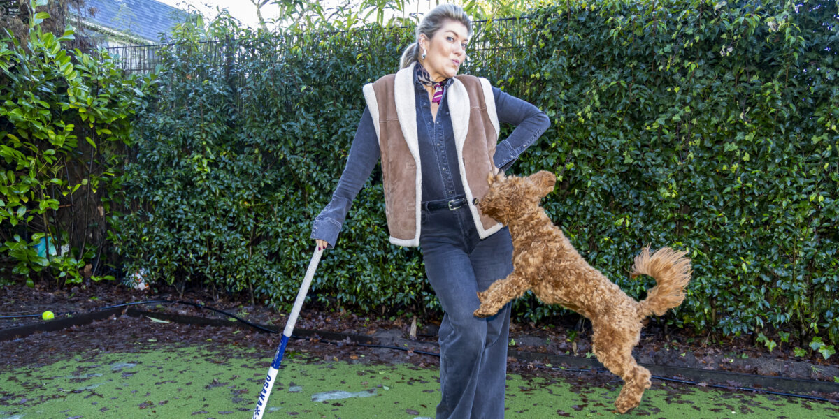 ‘Of er hier in huis wordt gehóckeyd?!’ lacht Pauline Wingelaar (39), bekend van de realityserie Echte Gooische moeders. ‘Er wordt werkelijk niets anders gedaan dan gehóckeyd!’ Ze zegt het zoals alleen zij als Gooische vrouw dat kan: sprankelend, met flair en met een stem die af en toe overslaat van verbazing. ‘Onlangs was ik boven en dacht ik: wat hoor ik nú? Pof! Daar ging de eerste bal door het raam.’