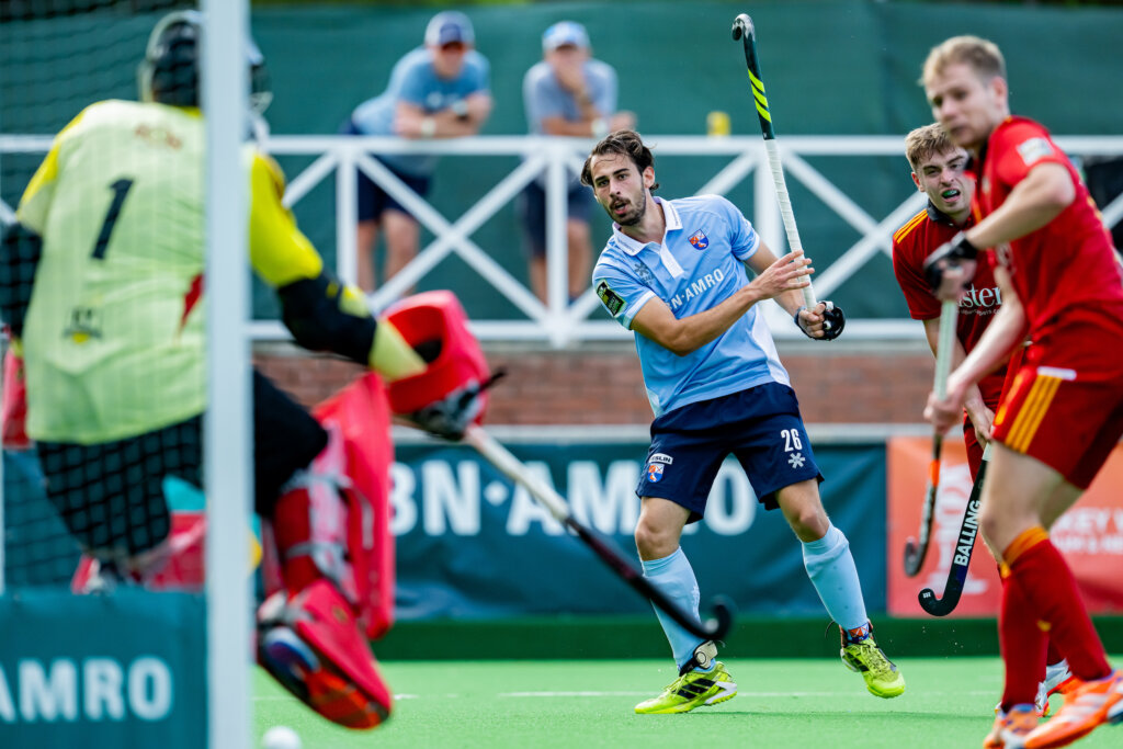 In de slotminuten haalde Polo de keeper naar de kant voor een extra veldspeler, maar dat pakte verkeerd uit. Terrance Pieters werd bij een uitbraak op weg naar het lege doel onderuit gehaald door Avila, wat Kampong een strafbal én de Spanjaard een gele kaart opleverde. Jip Janssen verzilverde het buitenkansje beheerst: 4-2.