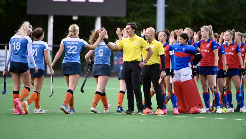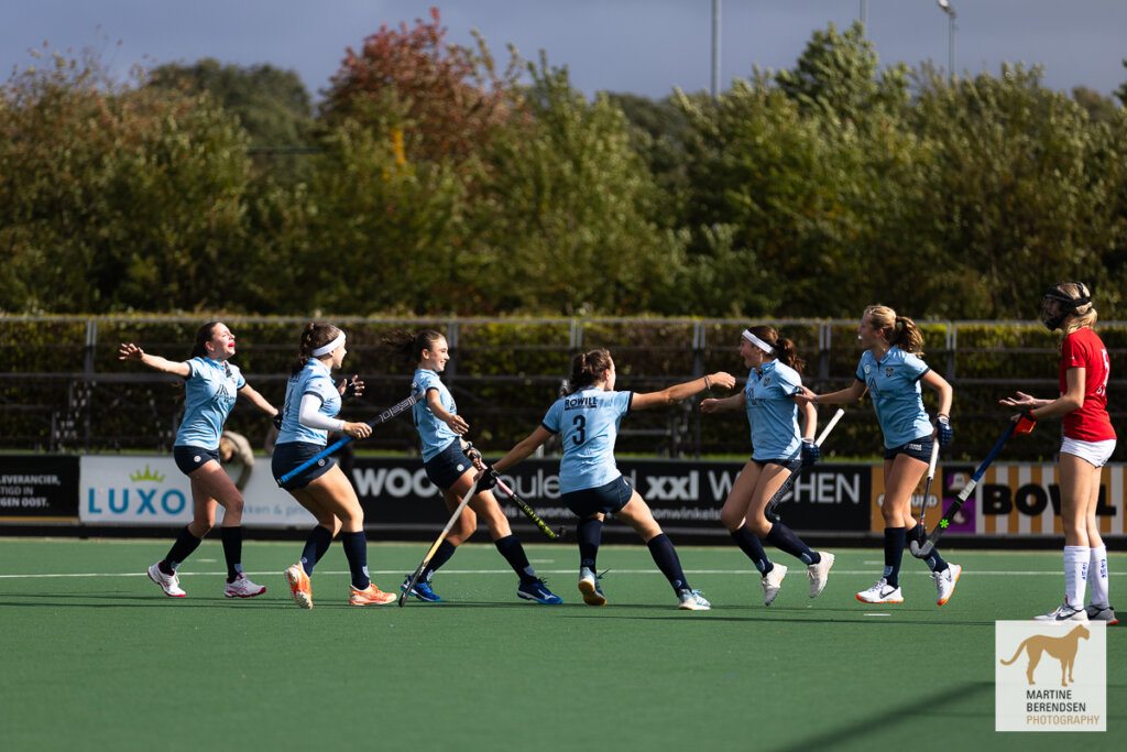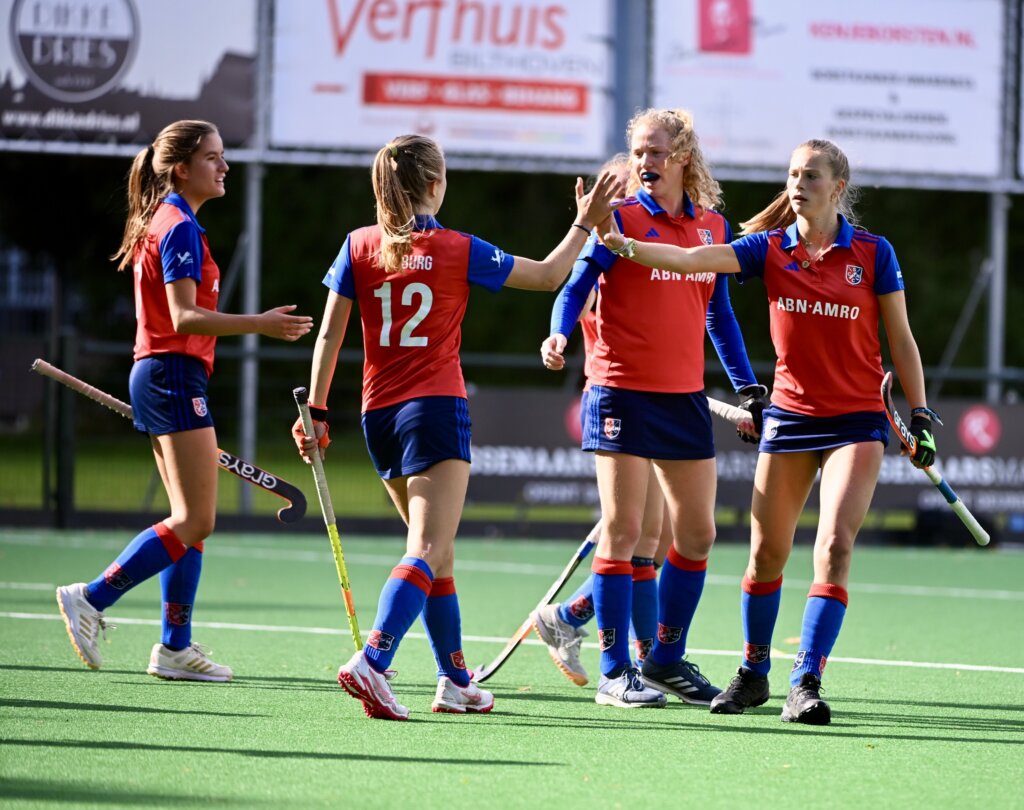 Bij de meisjes van Hurley was het dubbel feest. De ploeg won met 2-0 op bezoek bij Athena en bleef daarmee foutloos in de competitie. Dankzij die overwinning is deelname aan de landelijke competitie na de winterstop verzekerd. Ook Tilburg, Fletiomare, Den Bosch en Klein Zwitserland zijn na zes duels nog altijd zonder puntenverlies. De grootste uitslag van de dag kwam op naam van SCHC. De Bilthovense ploeg versloeg Leiden met maar liefst 11-0 en blijft ongeslagen. Concurrent Rood-Wit, dat ook nog geen nederlaag leed, kwam niet in actie. Het duel met GHBS werd afgelast. Het eveneens ongeslagen Victoria speelde wel en won met 3-0 van Schiedam. In Poule H greep HDM de koppositie. De Haagse formatie won met 9-0 van Apeldoorn en passeerde Craeyenhout op doelsaldo. Craeyenhout zelf bleef overeind met een nipte 1-0 zege op Kampong. Kampong zakte door de nederlaag naar plek vier, ten faveure van Oranje-Rood dat door de 6-0 overwinning op het nog puntloze Rosmalen de nieuwe nummer drie is.