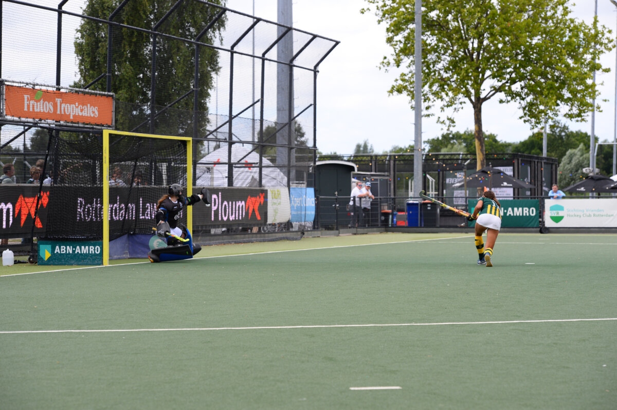 ‘Het was zo’n spannende wedstrijd en ontzettend warm. Aan het begin waren we niet helemaal scherp, maar gelukkig herpakten we ons. Bij mijn strafbal dacht ik: laat ik in de andere hoek pushen dan de stickkant. Ik heb er afgelopen week weer veel op geoefend en wilde er vol vertrouwen staan. Gelukkig pakte het goed uit en maakten we het met elkaar af.’