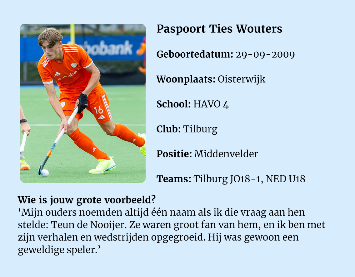 In de rubriek Youngstars geven we talenten van Nederlands O16 en O18 een plek in de schijnwerpers. Wie zijn ze, wat is hun drijfveer en hoe zien zij de toekomst? Deze week Ties Wouters (16), middenvelder bij Tilburg O18-1 en Nederlands O18.