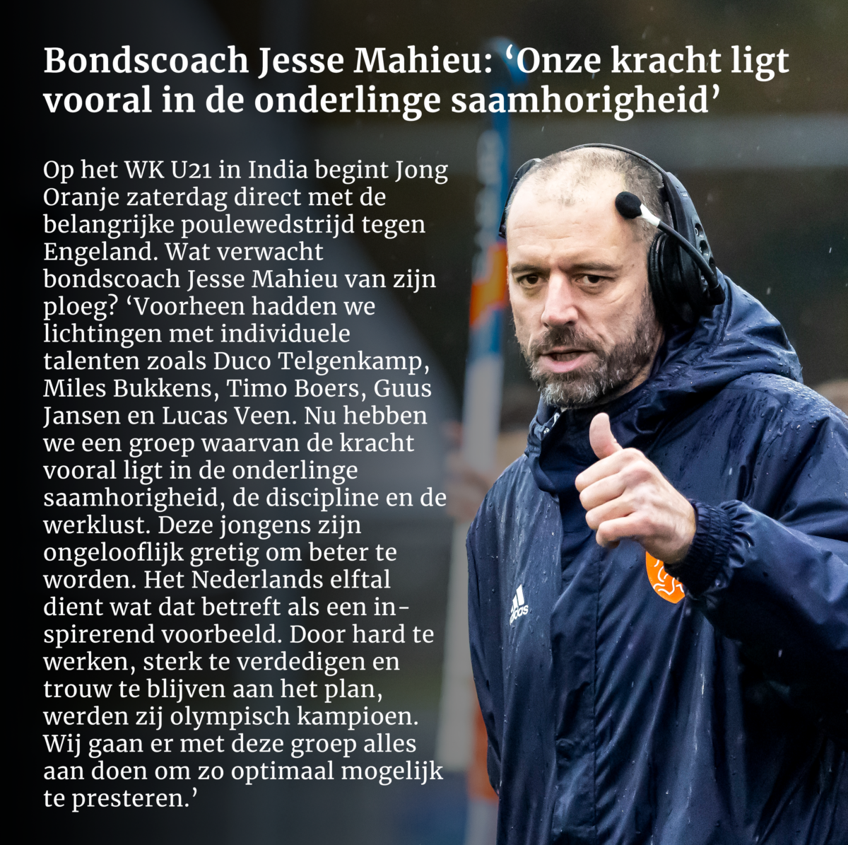 Op het WK U21 in India – dat zaterdag voor Nederland direct begint met de belangrijke poulewedstrijd tegen Engeland – neemt bondscoach Jesse Mahieu na ruim zes jaar afscheid bij Jong Oranje. In die periode is het tophockey steeds sneller en fysieker geworden, wat impact heeft gehad op de manier van opleiden. ‘Als de spelers ons traject hebben doorlopen en bij Oranje binnenkomen, staan ze niet met open mond toe te kijken.’