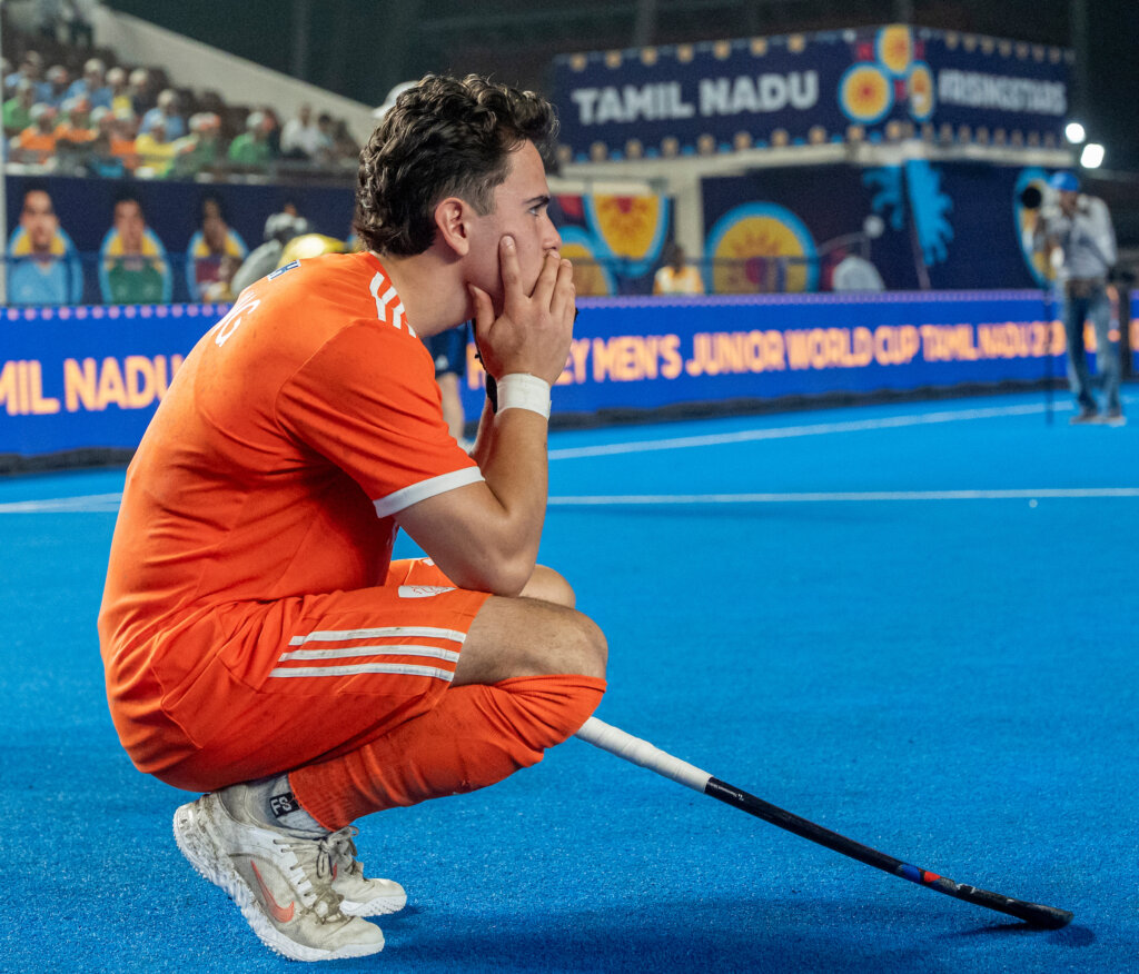 Dat Bakker vlak daarna geel kreeg, zorgde ervoor dat Jong Oranje met tien man op jacht moest naar de gelijkmaker. Het werden uiteindelijk tien veldspelers, door de keeperswissel. Met de kansen die Jong Oranje toen creëerde leek de wedstrijd alsnog op shoot-outs uit te draaien. Naar Nederland scoorde niet, waardoor het is uitgeschakeld voor de wereldtitel. Opnieuw geen halve finale. En wederom geen WK-goud. De titel die dus ook die jaar blijft ontbreken in de prijzenkast bij de hockeybond.