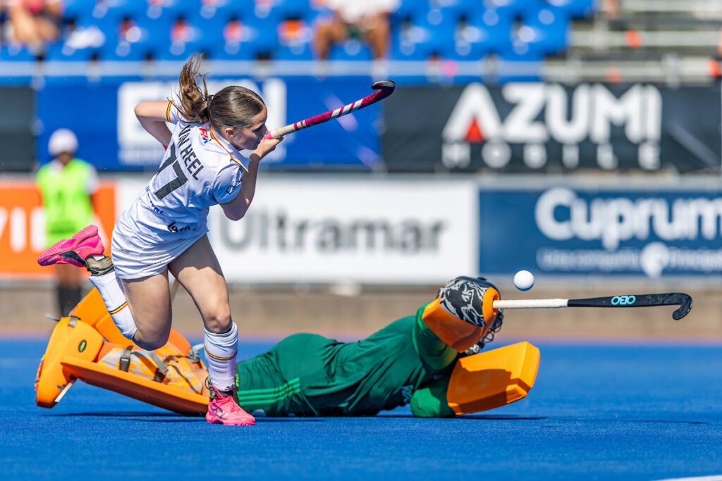 Op welke manier België het ook probeerde, telkens lag de keeper van Bloemendaal in de weg. Op de grond. Door de lucht. Op haar stick. Via haar legguards. Name it. Hazen heerste in het doel. De stem van de keeper trilt een beetje als ze erover praat. ‘Het allermooiste is dat iedereen op je af komt. Dat wil je als je gaat keepen. Als je dit soort prachtige wedstrijden kan spelen. Dan wil je het zo graag goed doen voor je team. Wat vandaag gebeurde, zag ik tot nu toe alleen op tv of in het stadion. Zoals dat Pirmin Blaak gebeurde in Parijs. Dat is echt prachtig.’