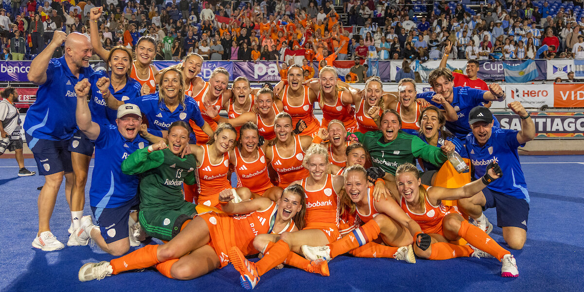 In die hectische slotfase hield Jong Oranje het hoofd koel. Ze werden net als tegen België tot het uiterste getest. Nu speelde Nederland ook nog tegen de twaalfde Argentijnse man, die zich ook vaak met het spel bemoeide. Tellier moest met groen naar de kant. Argentinië haalde zijn keeper eruit. Het piepte en kraakte bij Nederland. Maar het liep allemaal goed af. Na een heleboel nagelbijtende minuten kwamen het verlossende fluitsignaal. Jong Oranje is weer de beste van de wereld bij de dames. Op een toernooi waarin deze lichting niet alleen liet zien dat ze heel goed kunnen hockeyen, maar ook enorm kunnen knokken.