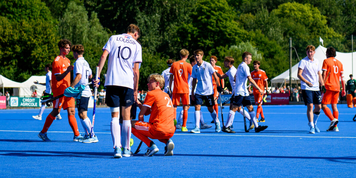 Het was uiteindelijk Frankrijk dat de score opende. Paul Barbier pushte de tweede Franse corner raak, al leek die kans eerst verloren te gaan na een stopfout. De mislukte variant belandde via Barbier precies tussen Ausema en lijnstopper Tom Hermus in: 0-1.