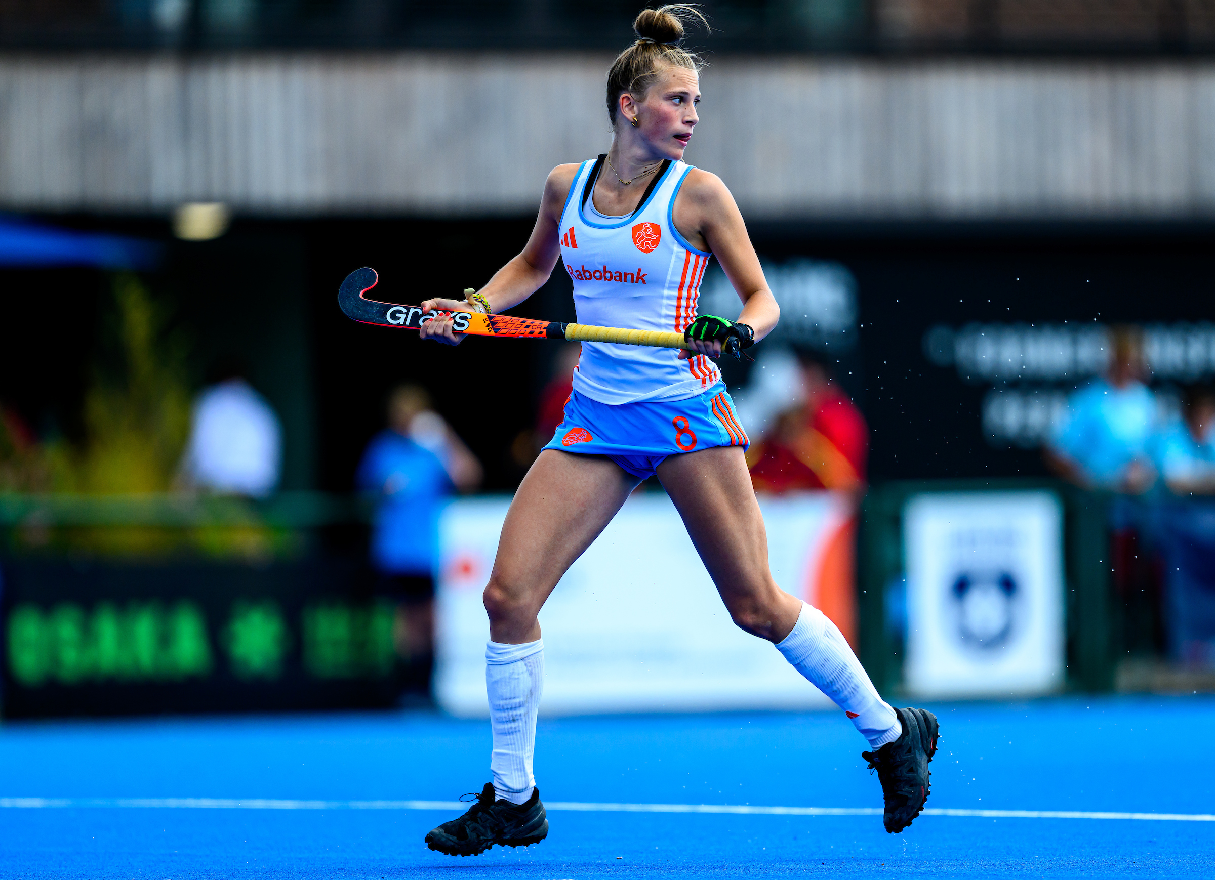Geen theetje aan de keukentafel dus, maar een telefoontje. Allemaal vanwege haar dromen. ‘Tot nu toe gaat het goed, maar er zijn ook heel veel andere goede meiden in de selectie’, is ze realistisch. ‘Dus ik wil nu gewoon heel erg genieten. In het nu leven. En geschiedenis schrijven. Hoe vet zou het zijn als iemand van Quick Stick in Oranje komt? Dat is wel iets wat ik later aan mijn kleinkinderen wil vertellen hoor.’
