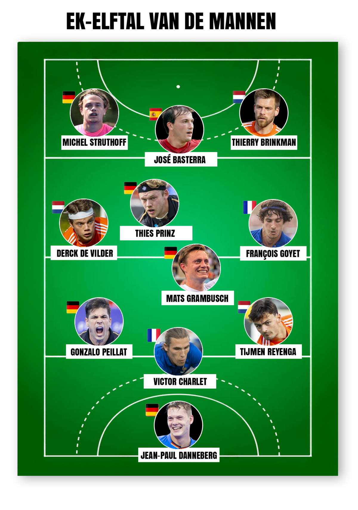 Middenveld: Derck de Vilder (Nederland), Thies Prinz (Duitsland), François Goyet (Frankrijk), Mats Grambusch (Duitsland)