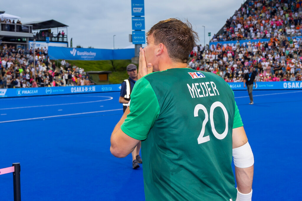 Het is de meest vreemde anekdote van Meijer na afloop. Hij hangt tegen de boarding, vlak na de prijsuitreiking waarin Oranje de rechthoekige en ongewilde zilveren medailles ontving. Wat een ontgroening voor de doelman, die tot dit EK pas zo’n vijftien minuten toernooi-ervaring had. Die beleefde hij op het Europees kampioenschap van 2023, waarin hij reserve-goalie was achter Maurits Visser.