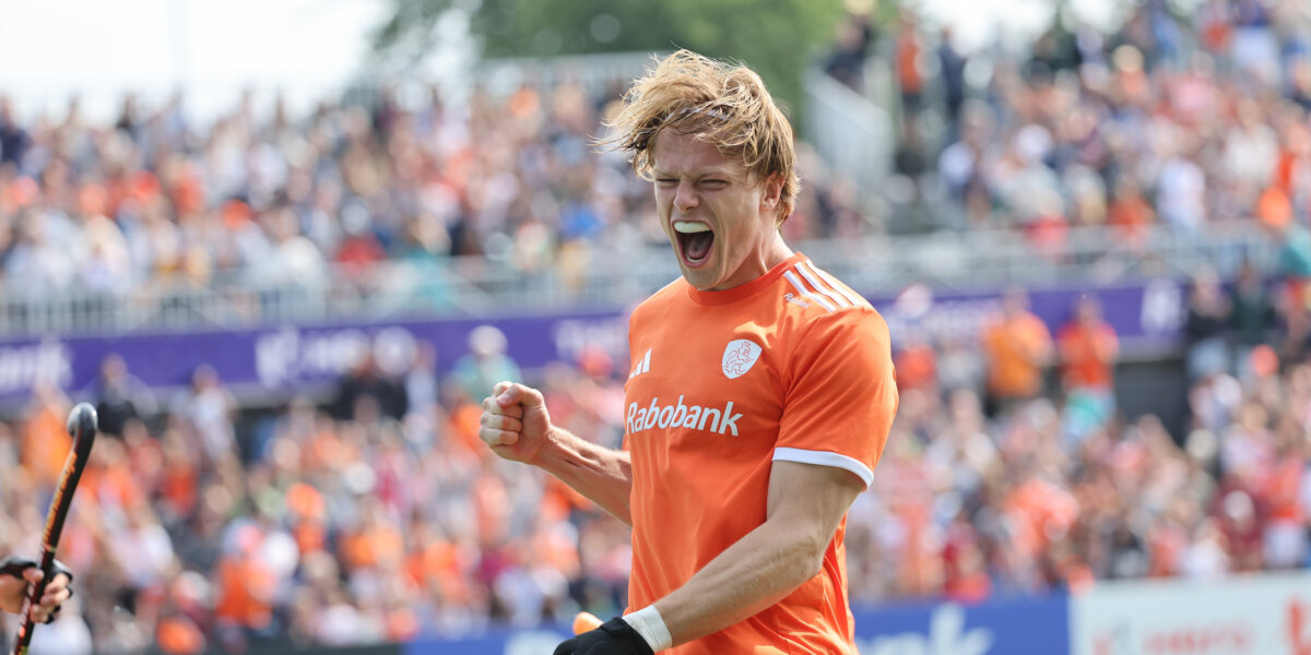 Jip Janssen viert zijn winnende treffer voor Oranje tegen India. Foto: Willem Vernes