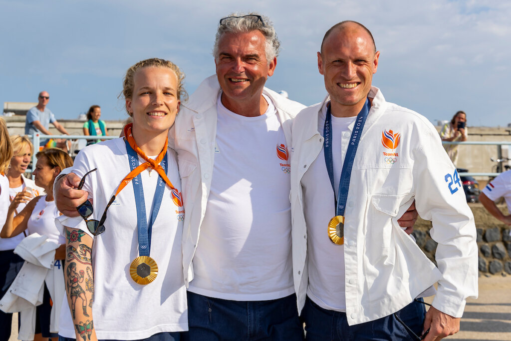 Zijp met Anne Veenendaal en Pirmin Blaak na de gouden Spelen in Parijs. Foto: Willem Vernes