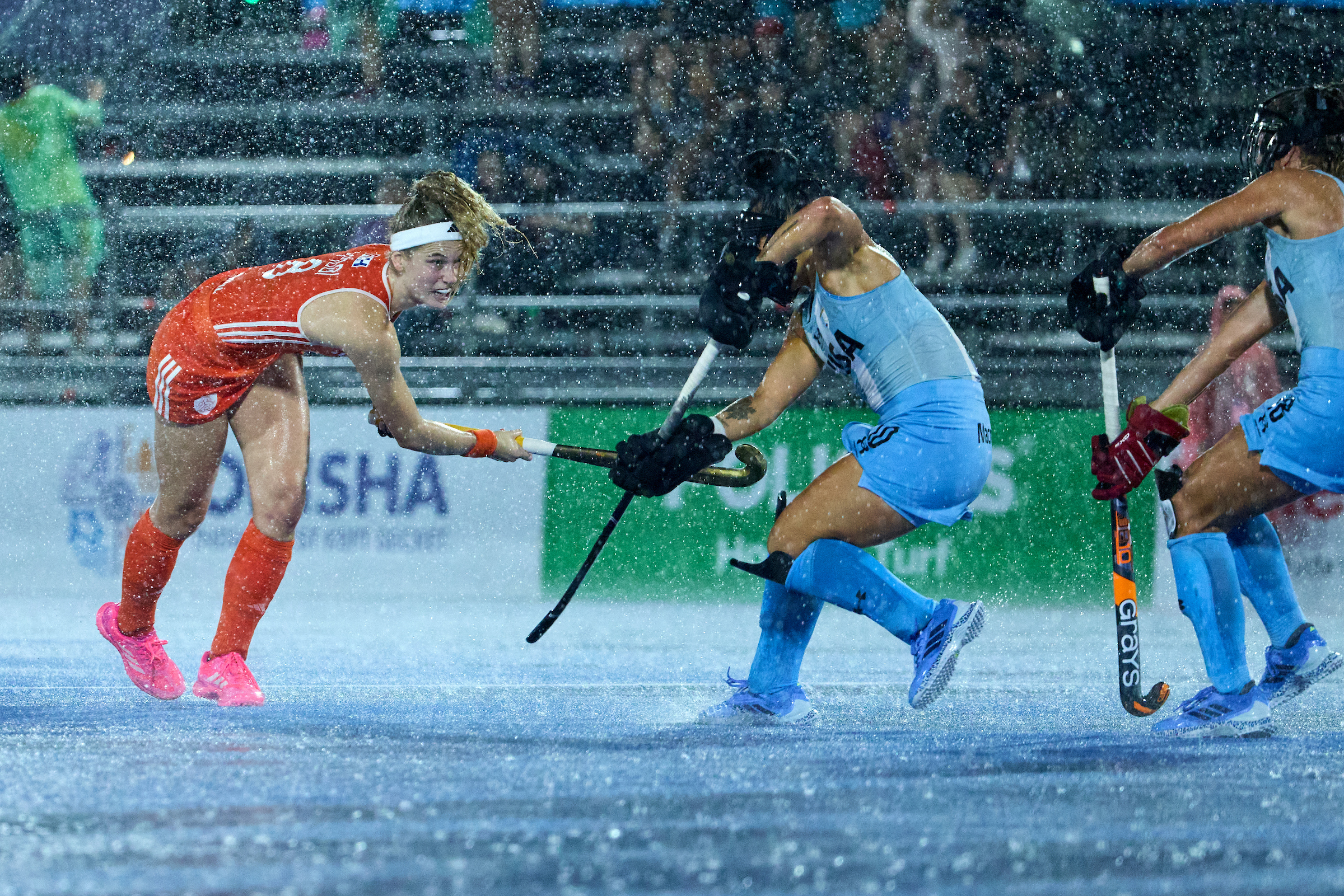 JANSEN Yibbi try to execute a drag flick on the heavy rain
