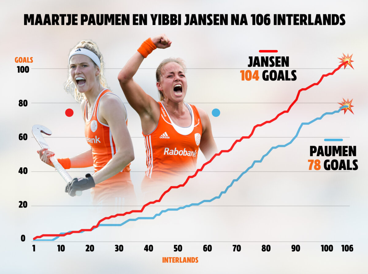 Yibbi Jansen doorbrak vorige week als vijfde international de grens van honderd interlanddoelpunten. Een prachtige mijlpaal, maar meer nog een toegangspoort tot een zeer exclusieve club. We kunnen niet in de toekomst kijken, maar de 26-jarige strafcornerspecialist lijkt een serieuze aanval te doen op het Oranje-doelpuntenrecord van Maartje Paumen.
