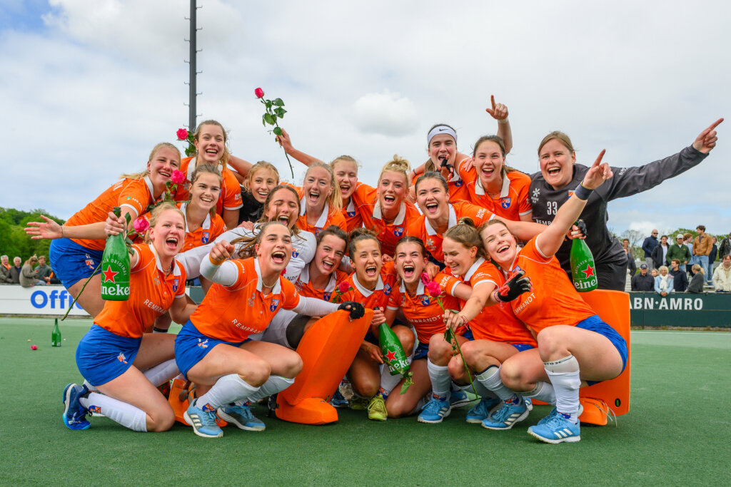 De dames van Bloemendaal spelen volgend seizoen weer op het hoogste niveau. De champagne vloeide na afloop op ’t Kopje na de 3-1 zege op Were Di. Omdat concurrent Nijmegen punten liet liggen tegen Leiden, is Bloemendaal niet alleen verzekerd van promotie maar ook van de titel in de Promotieklasse. Tranen waren er in Vught bij MOP dat door de 1-3 nederlaag tegen Schaerweijde volgend seizoen in de Overgangsklasse speelt.