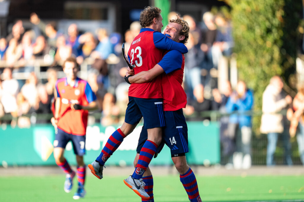 Na de wedstrijd staat Hafkamp glunderend naast de dug-out. Zijn glimlach loopt bijna van oor tot oor. Nadat hij een kort fotomoment heeft gehad en vervolgens twee jonge fans zijn handtekening op hun stick hebben verzameld, vertelt hij wat voor topweek het voor hem is geweest. ‘Eerst geselecteerd worden voor Jong Oranje en vervolgens winnen én scoren tegen Nijmegen – veel beter wordt het niet,’ aldus de middenvelder.
