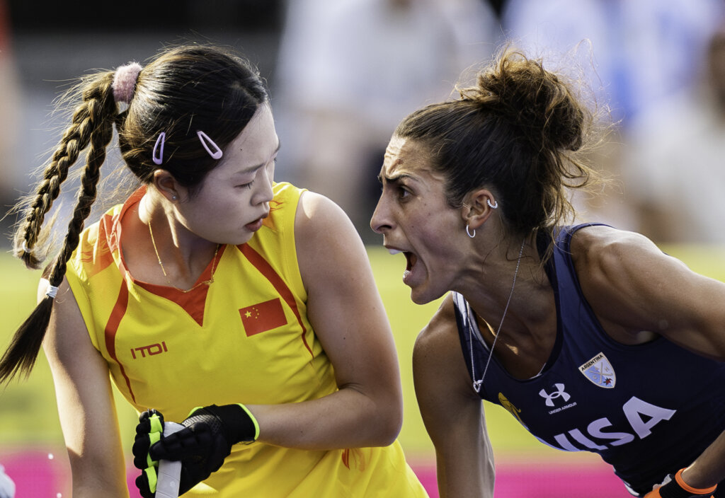 2. China is onder leiding van Alyson Annan een duidelijk opkomend hockeyland. In dit duel was de Argentijnse speler zichtbaar geïrriteerd door haar Chinese tegenstandster. Dit was een echte split second-opname en precies dat maakt het zo’n sterk en leuk moment.