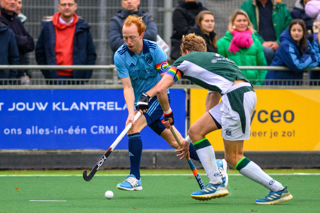 Kijken we naar de onderkant van de ranglijst dan is Leiden zo goed als veilig. De voorsprong op de tiende plaats — die leidt tot play-outs — bedraagt negen punten. Nummer elf HGC volgt op elf punten afstand.