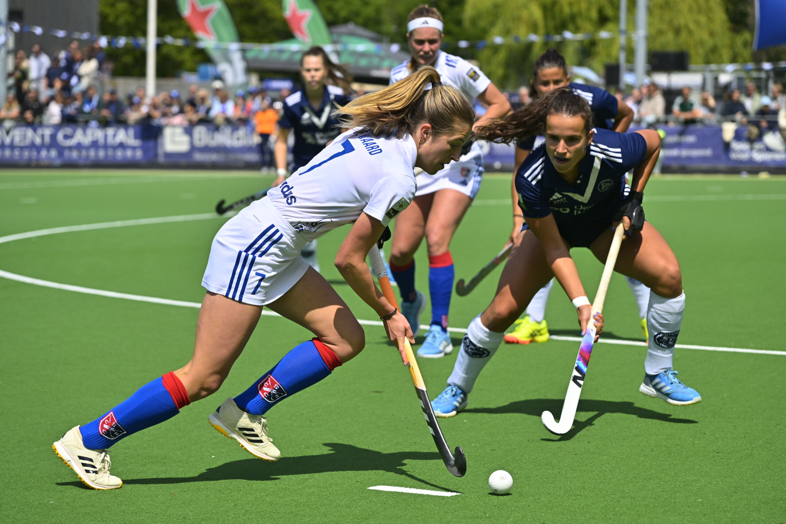 Pinoké kon er nog een derde strafcorner van Tessa Beetsma tegenover zetten, maar ook die kon geen lach op de gezichten van de wat stilgevallen toeschouwers brengen.