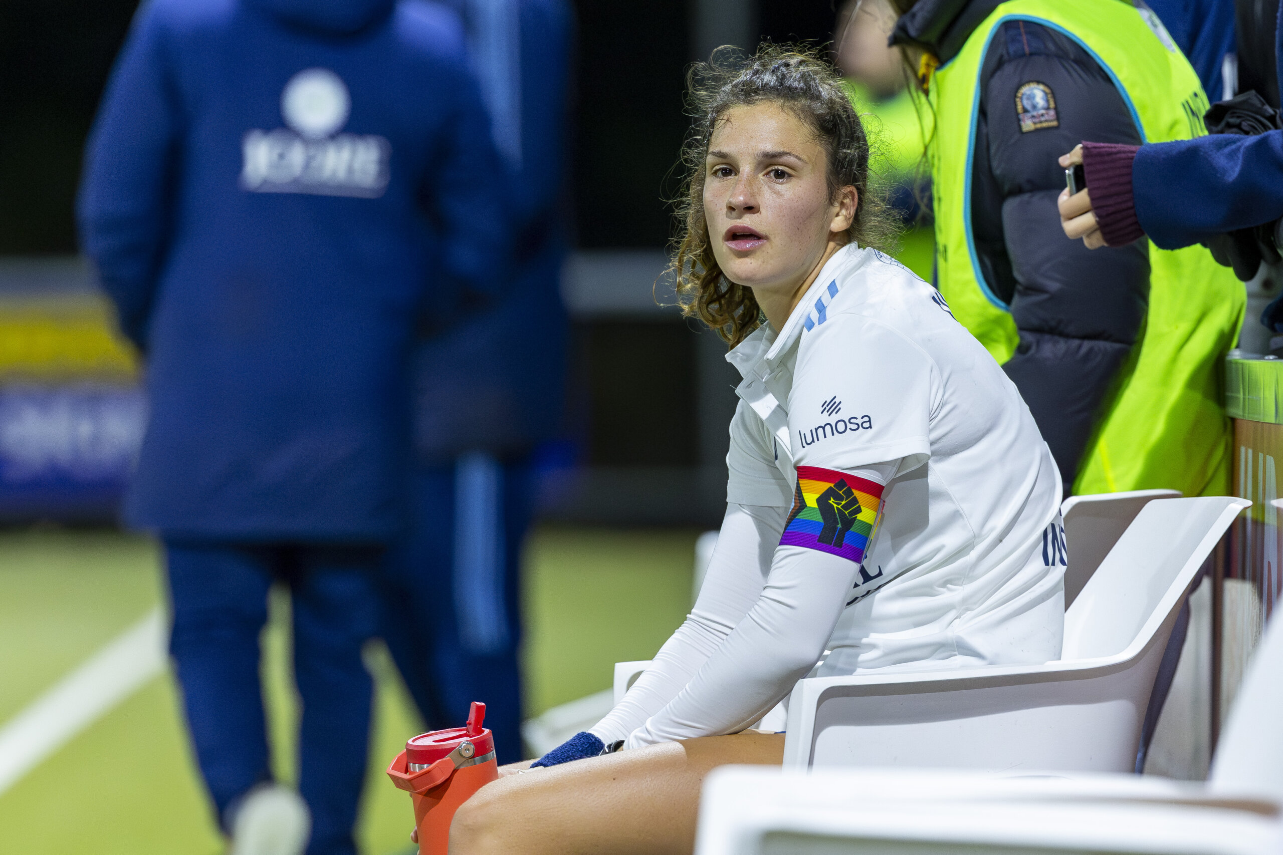 De 23-jarige middenvelder baalt. Is hartstikke zuur van de pijnlijke nederlaag. ‘Uiteindelijk is het mijn fout dat ik een kaart pak. Ik had beter mijn mond kunnen houden’, vertelt ze. Maar dan had die fatale strafcorner nog altijd gestaan. ‘Ik heb mijn team in de steek gelaten’, stamelt het kind van de club. Bovendien is het alweer haar tweede gele kaart, waardoor ze al vroeg in het seizoen op scherp staat.
