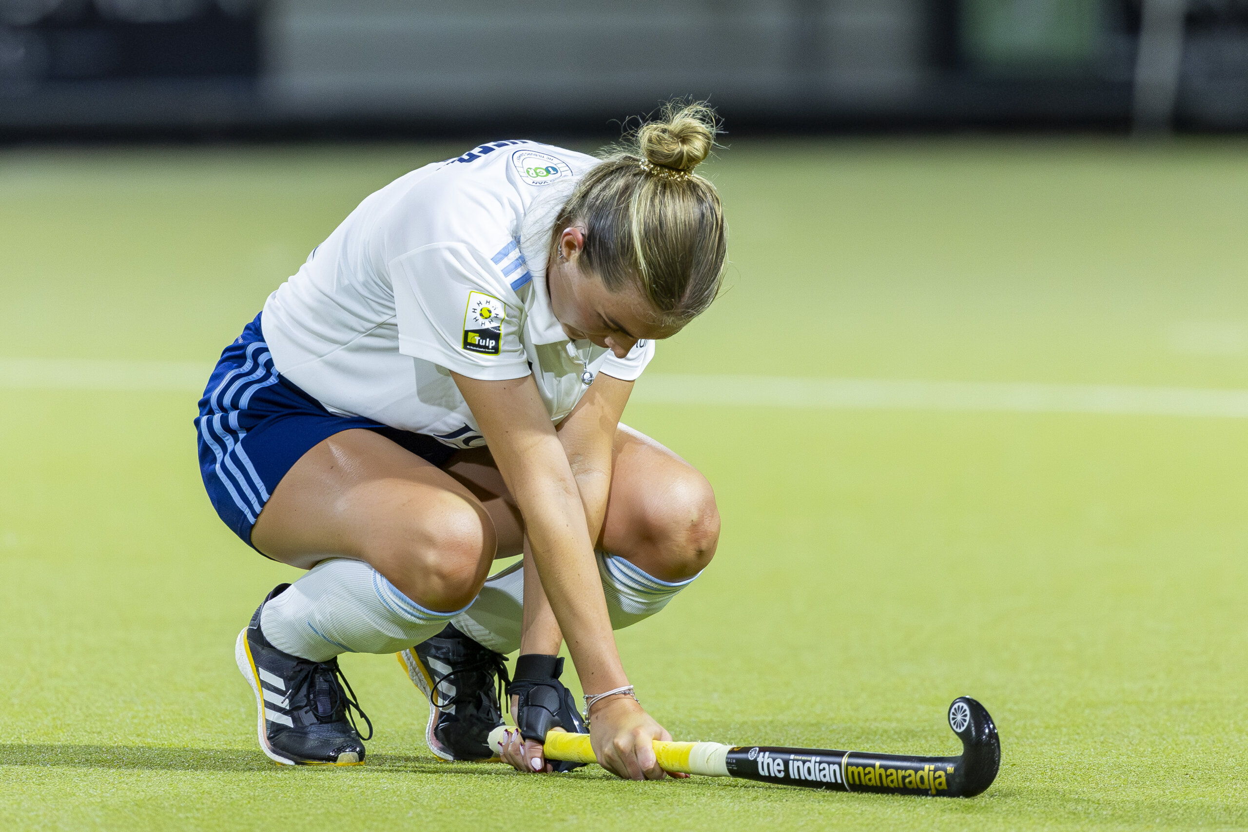 Een chagrijnige Lotte de Heer, de enige speler die naar Tilburg kwam met Hoofdklasse-ervaring (bij Rotterdam). Foto: Willem Vernes