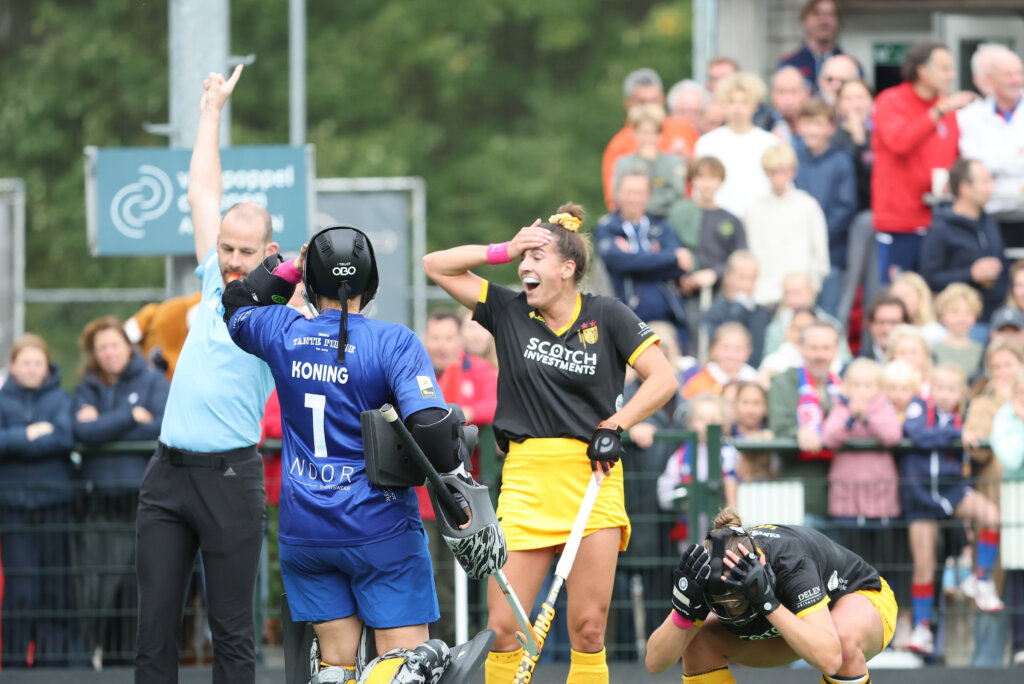 Na rust waren de bezoekers dodelijk efficiënt. Babs Reijnen zette Den Bosch op voorsprong, profiterend van een overtalsituatie doordat Anna de Geus en Xan de Waard even met groen aan de kant zaten. De Brabanders leken de winst binnen te halen, totdat Pien Sanders tien minuten voor tijd met rood van het veld werd gestuurd. Ze incasseerde haar tweede gele kaart nadat ze bij het weggooien van haar strafcornerbescherming de scheidsrechter had geraakt.