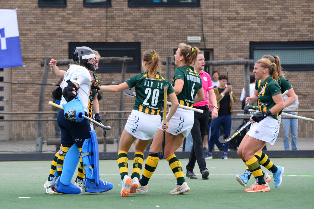 De derde Nijmeegse treffer kwam toch nog. Met nog 2,5 minuut op de klok haalde coach Martin van de Rakt zijn keepster naar de kant voor een extra veldspeelster. Het risico werd beloond: Louise van Meteren gaf het laatste tikje op de doellijn en bracht de totaalstand op 4-4.