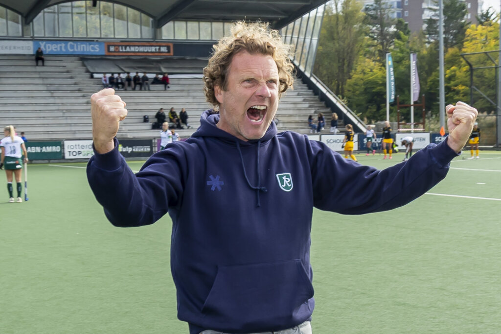 Was getekend, Jorge Nolte. De coach van Rotterdam die zondag non-stop alles en iedereen aanmoedigde, inclusief het publiek. De hockeyvariant van voetbalcoach Diego Simeone van Atlético Madrid. Constant schreeuwend, motiverend en opjuttend. Ook hij ging vol uit zijn dak bij de saves van Bing. ‘Door haar bleven we in de wedstrijd. Ze stond er. Ze moest even wennen. Sorry coach, zei ze in die eerste wedstrijden tegen mij. Ik heb je in de steek gelaten. Ik kan echt veel beter, geloof me.’