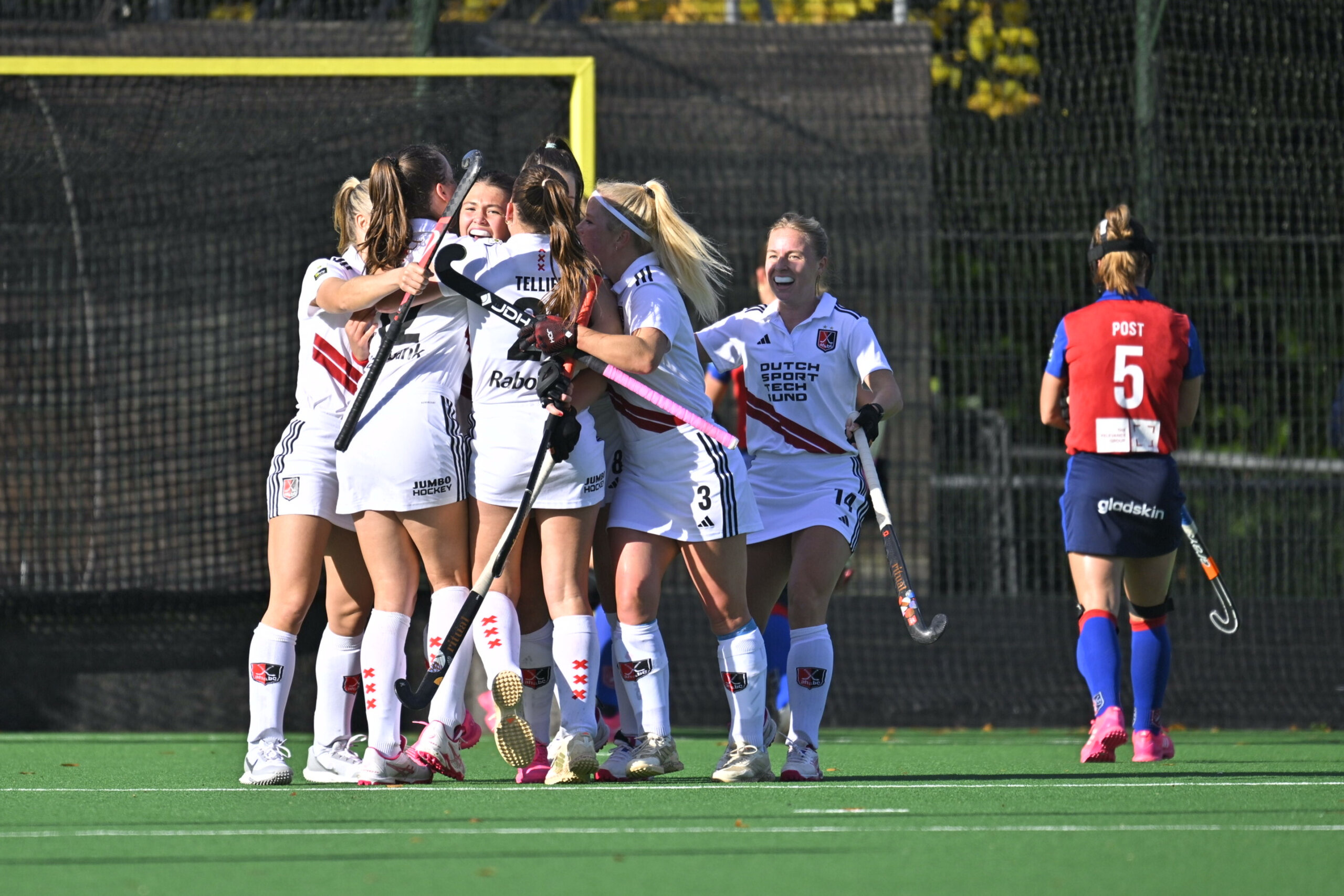 Na rust bleef Amsterdam vertrouwen op de counter. Freeke Moes zette aan voor een indrukwekkende sprint en vond Van der Elst in de cirkel. Die probeerde de bal opnieuw in één beweging over de doellijn te werken, maar dit keer had Picard een passend antwoord. Even later stuurde Marijn Veen Renske Balemans diep, al leverde ook die kans niets op. Aan de overkant testte Marleen Jochems keepster Anne Veenendaal met een bekeken forehandschot, en even later stuitte ook Jip Dicke op de Amsterdamse goalie.