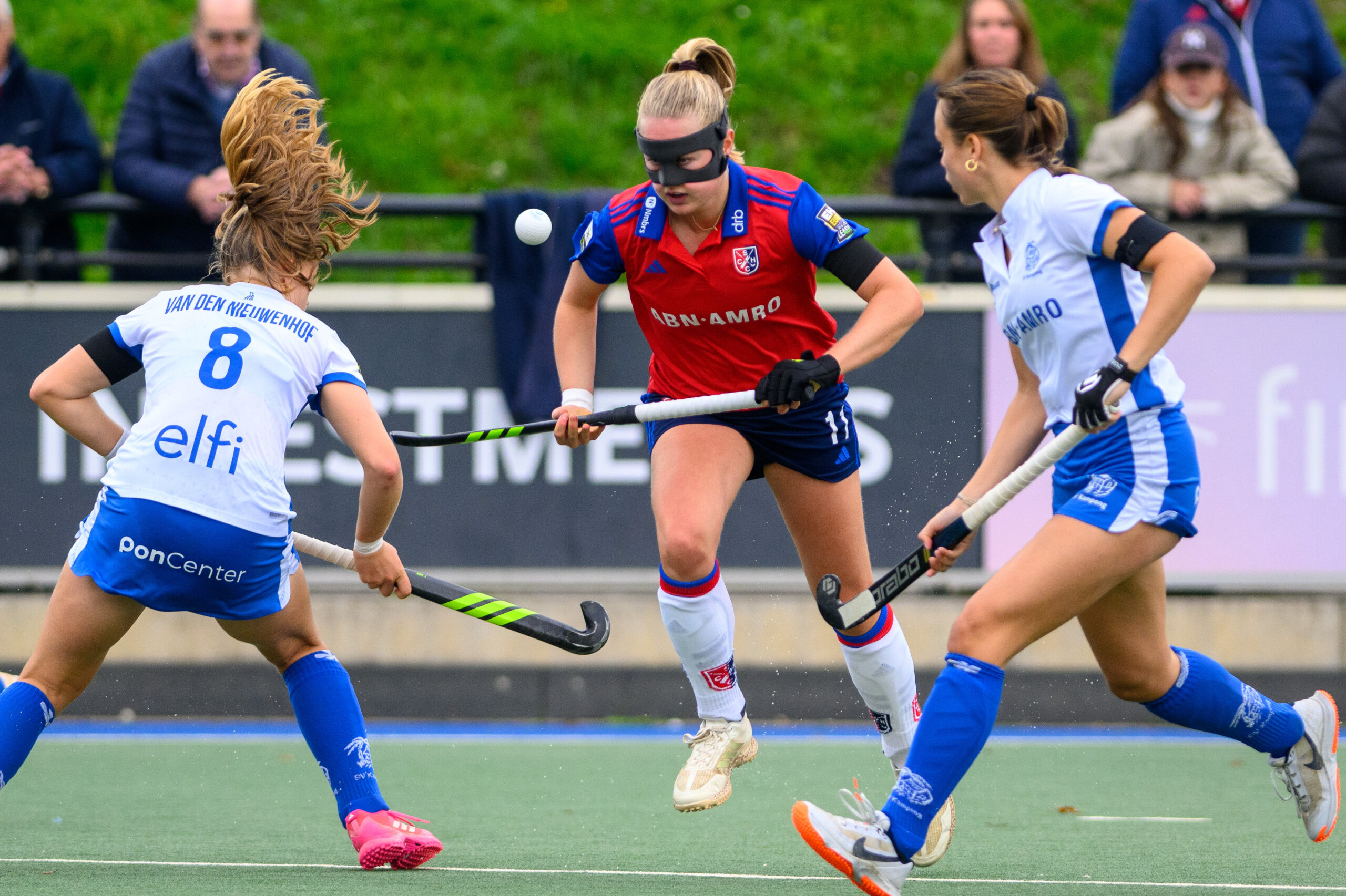 Het seizoen 2025-2026 begon voor Maud van den Heuvel niet vlekkeloos. De 20-jarige aanvaller van SCHC brak vlak voor de competitiestart haar neus en speelt sindsdien elke wedstrijd met een zwart masker. Maar ‘Zorro’ scoort gewoon door: met haar treffer van zaterdagmiddag tegen Kampong staat haar totaal nu op vijf.