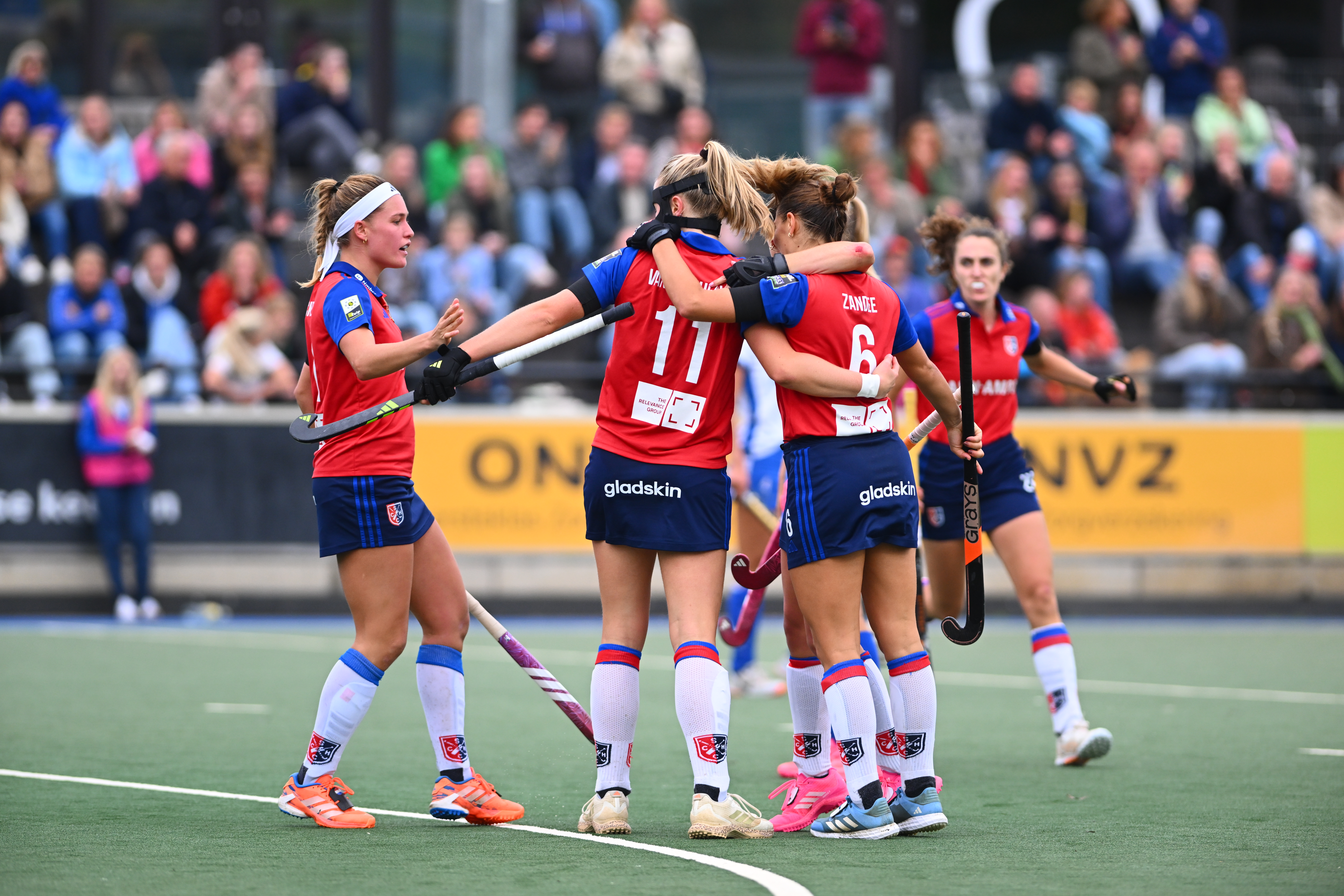 ‘Het is heerlijk om vanuit de draai te scoren’, vertelt Maud van den Heuvel na afloop, terwijl ze op het veld van Kampong omringd is met tientallen kinderen die netjes wachten tot de neo-international uitgepraat is voor een selfie. Vlak daarvoor had ze een kort gesprekje met haar coach Robbert van de Peppel. Waar dat over ging? ‘Hij was wel tevreden, geloof ik. Pep is ook spits geweest. Dus dat is voor mij genieten. We trainen veel op scoren. Daar heb ik wel profijt van.’