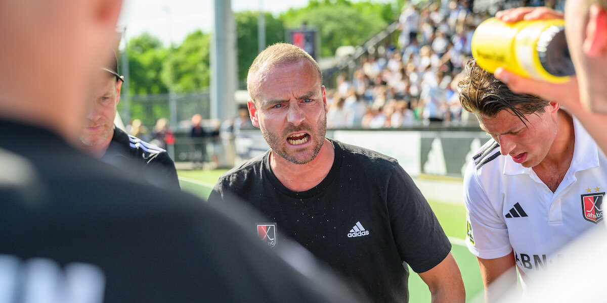 De woede-uitbarsting van Amsterdam-coach Rick Mathijssen was op de allerhoogste zitplekken van het Wagener Stadion te horen. Nou ja, te horen… De galm van zijn tirade klonk over de stoeltjes in het heerlijk gevulde stadion.