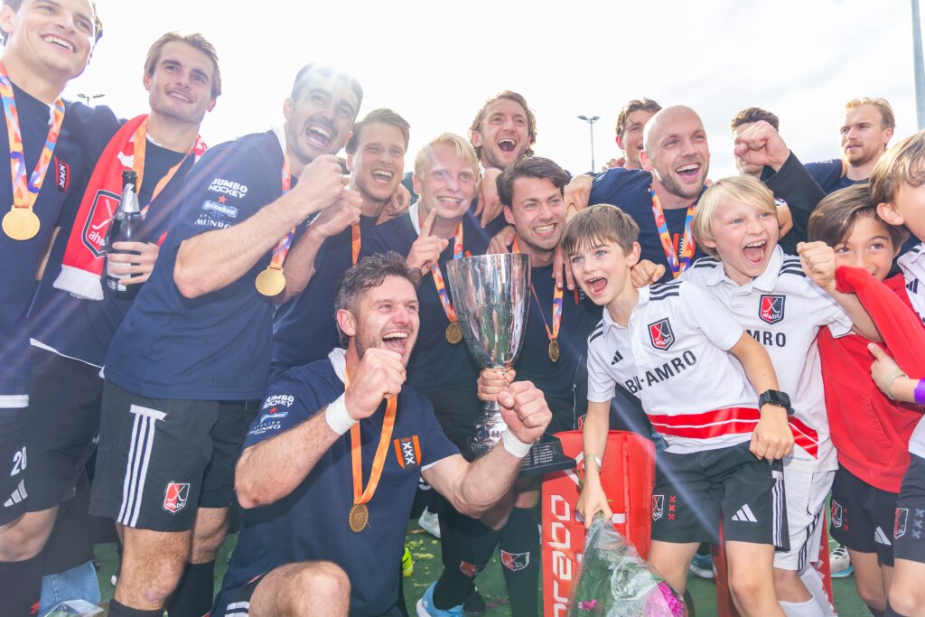 Hij liep donderdagavond rustig met een biertje in zijn hand langs de boarding. Van een afstand zag hij zijn teamgenoten nog vol hossen, dansen en juichen. Heel even nam Kemperman afstand van die hectiek. Genoot de oudste speler – volgende maand wordt hij 35 – van de ploeg op zijn eigen manier. Kreeg hij knuffels van zijn vriendin en oud-international Sophie Polkamp en hun dochtertje Keesje. Die droeg een aandoenlijk mini-shirtje van Amsterdam met dezelfde naam op haar rug als haar vader.