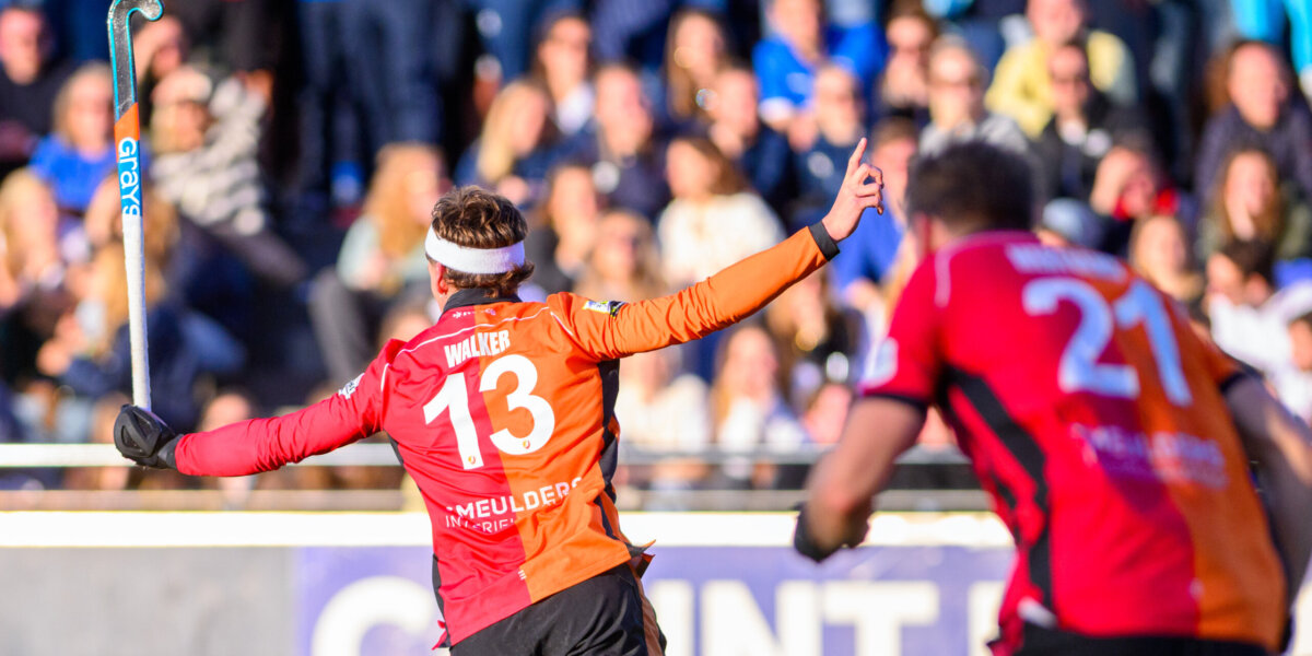 Een historische prestatie van Struan Walker bezorgde koploper Oranje-Rood de 4-2 zege in Utrecht. De Schotse scherpschutter schreef geschiedenis door als eerste speler ooit vier doelpunten te maken in een uitwedstrijd tegen Kampong. Walker was niet te stoppen zondagmiddag op de Klapperboom. Hij zette de bezoekers voor rust al op een 2-0 voorsprong. Na de pauze maakte Walker zijn hattrick compleet voordat Sander van de Putte iets terugdeed namens Kampong. Walker maakte vervolgens de mooiste treffer van de dag door de bal over Kampong-doelman Luis Calzado in het doel te lobben. Hij staat nu op vijftien doelpunten. Duco Telgenkamp maakte er nog 4-2 van, maar dichterbij kwam de thuisploeg niet. Het was voor Telgenkamp wel al zijn twaalfde goal in de laatste acht officiële wedstrijden voor de Utrechters. Met deze overwinning blijft Oranje-Rood de ongeslagen koploper, en is nu al veertien duels op rij zonder nederlaag. Kampong, dat nog steeds zonder de geblesseerde Jip Janssen speelt, zag een reeks van drie overwinningen ten einde komen.