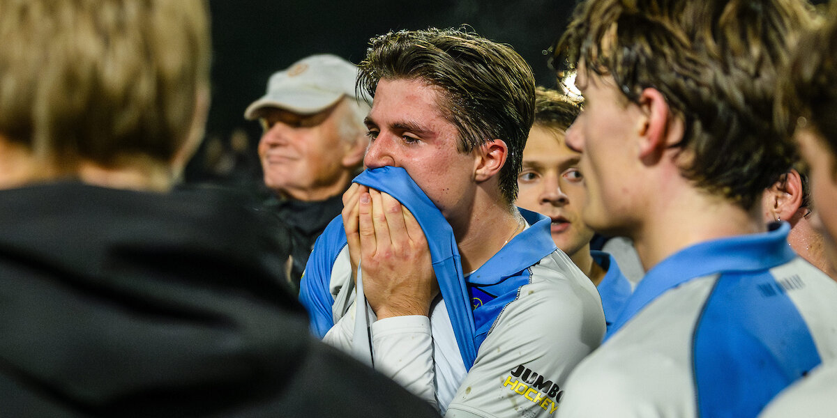 Gelaten liepen ze naar het kringetje na afloop van het chaotische degradatieduel. Met de koppen naar beneden slenterden ze naar elkaar toe in hun natte shirts, hartstikke vuil van het veld. Trouw liepen ze langs hun fans, die een troostend applausje over hadden voor hun helden. Die waren niet blij en trots op hun zwaarbevochten punt, maar vooral pissig over de mislukte inhaalslag van de hekkensluiter in de Tulp Hoofdklasse.