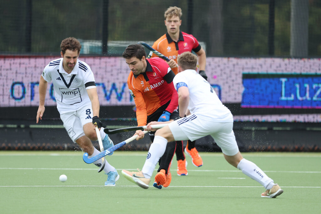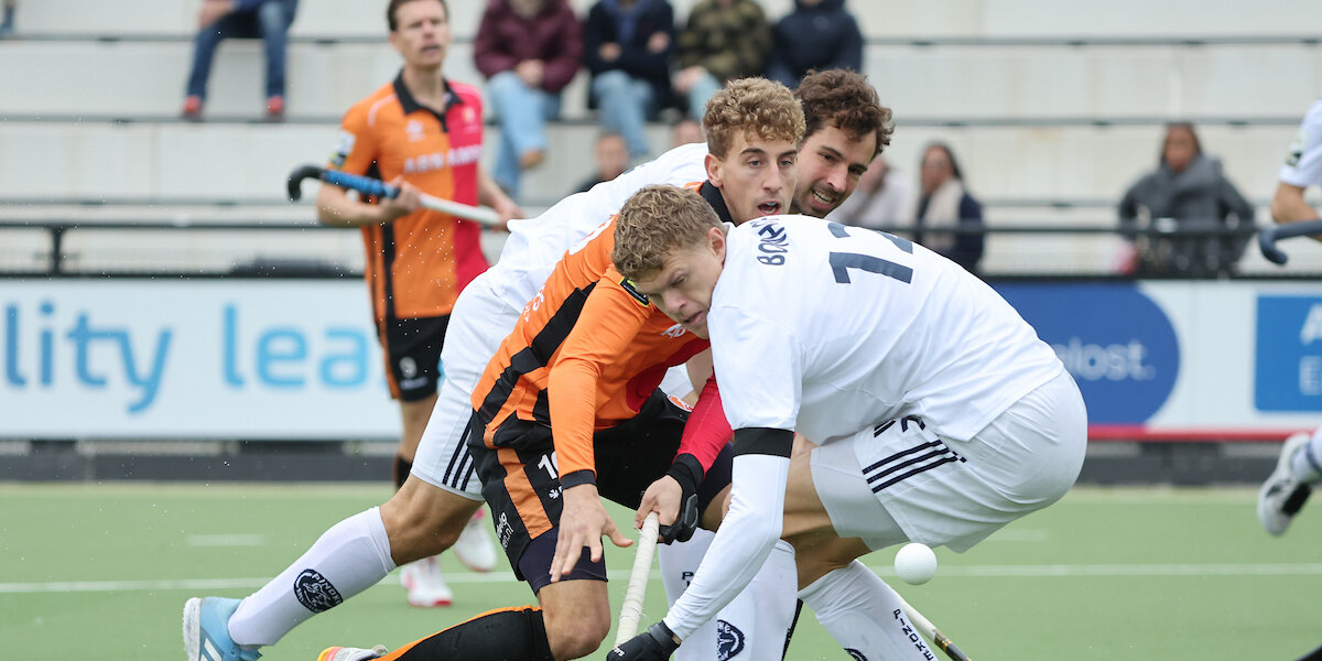 Op z’n hurken, met zijn hoofd gebogen zat Joep de Mol in de cirkel. Arthur de Sloover discussieerde nog stevig na met de arbitrage. Gerard Clapes keek stuurs voor zich in de dug-out. Weer twee punten laten glippen, net als een week eerder tegen Klein Zwitserland (1-1). En net als twee weken geleden tegen Amsterdam (4-4). Weer een wedstrijd waarin ze in de slotfase een keiharde dreun om de oren kregen. En daardoor niet drie, maar een puntje pakten.