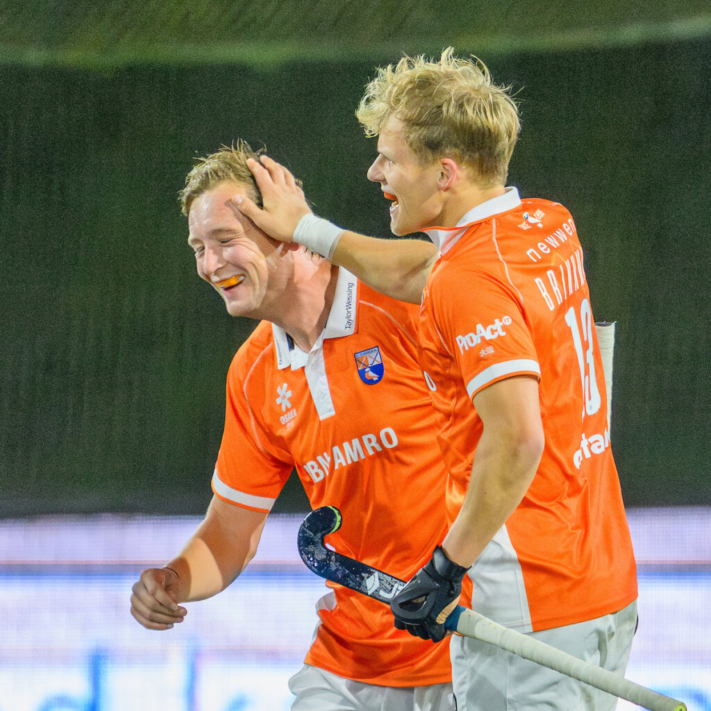 ‘Ik zat me op te vreten langs de kant’, vertelt de 136-voudig international. ‘Gelukkig liep het goed af. We begonnen ook meteen sterk vandaag. We hadden allemaal het gevoel dat we een antwoord moesten geven op de blamage van zondag. En ja, het ging hard. Dat is al een verschil met de afgelopen wedstrijden. Toen misten we ritme in de corner. Het aangeven, stoppen en de pushes gingen allemaal net niet-super. Nu vlogen al heel snel twee corners binnen. Dat helpt wel. Het ging na die kaart nog alle kanten op, maar we verdedigden hun belangrijke spelers goed. Baas (al jaren de bijnaam van Maurits Visser, red.) pakte nog een paar belangrijke corners. Allemaal dingen die vandaag top waren.’