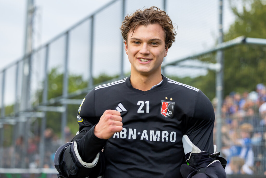 Gekleed in het donkerblauwe kampioenshirt en de gouden medaille om zijn nek grijpt hij meerdere malen met beide handen naar het hoofd. De achttienjarige doelman probeert te bevatten wat er zich zojuist heeft afgespeeld in het Wagener Stadion. Amsterdam is voor het eerst sinds 2012 weer de beste van Nederland.