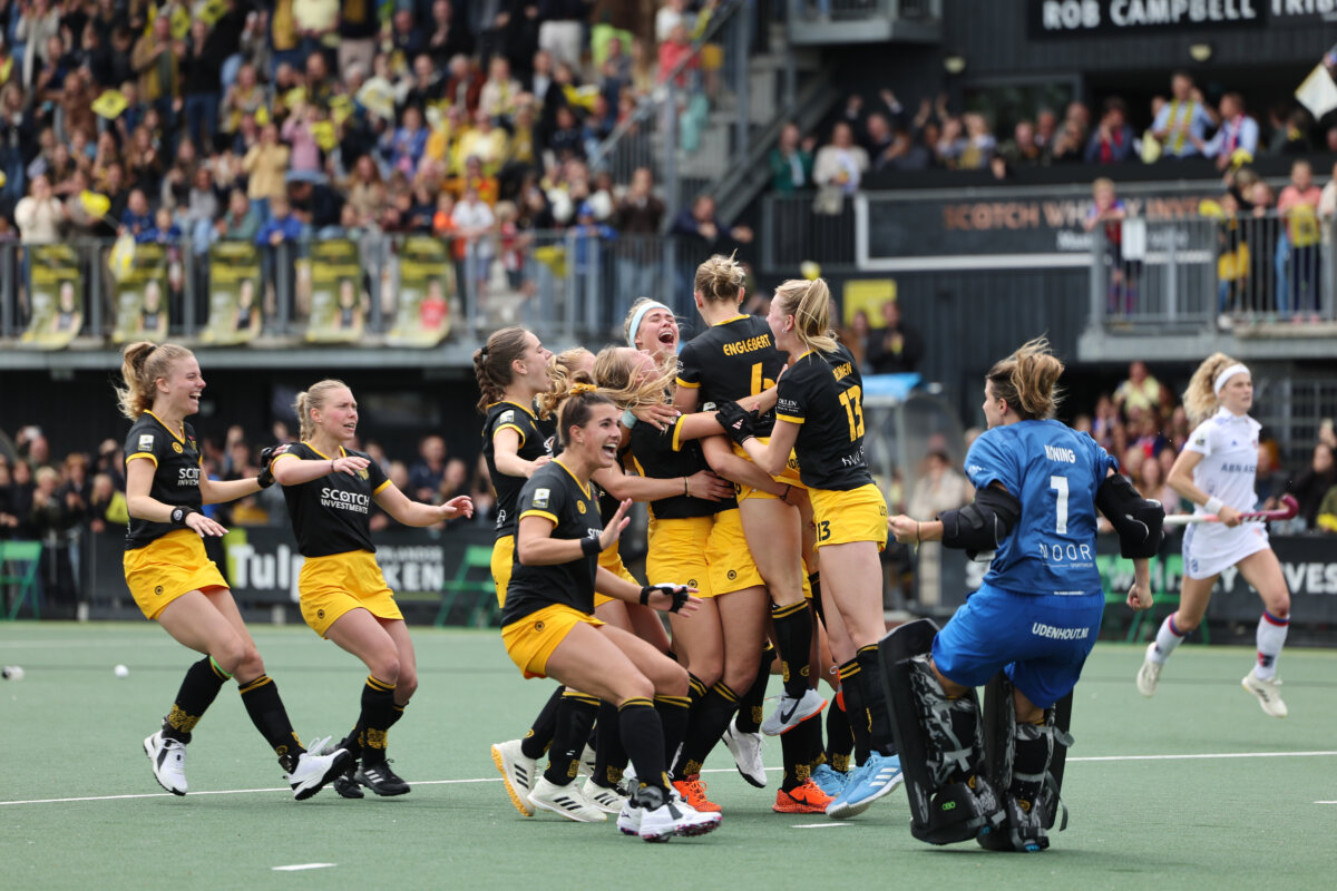 Charlotte Englebert heeft de beslissende shoot-out benut: Den Bosch is landskampioen. Foto: Willem Vernes