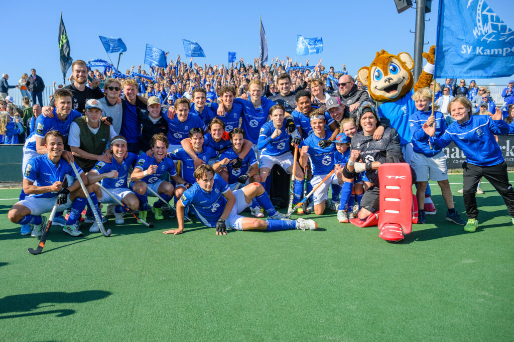 Vreugde bij Kampong na de winst op Bloemendaal. Foto: Bart Scheulderman
