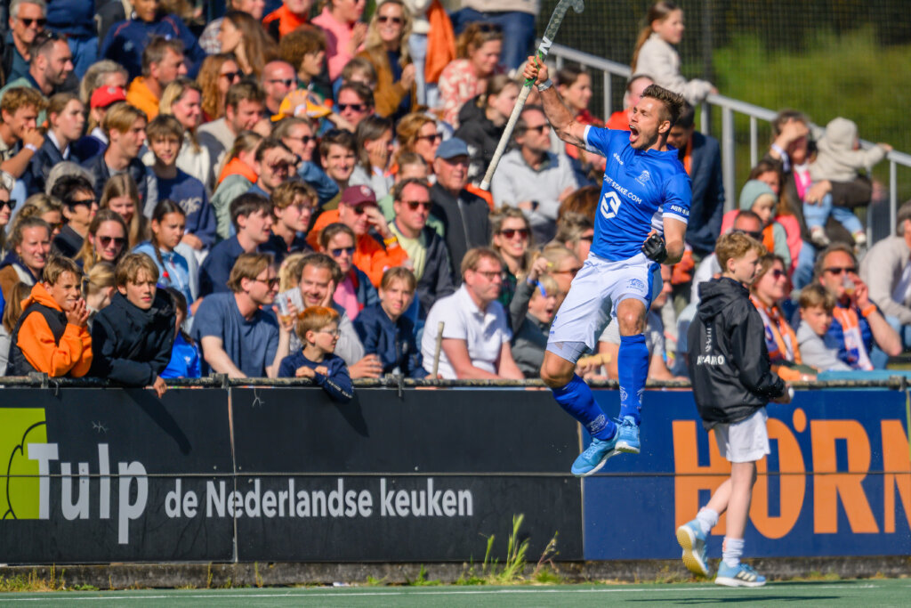 Sander de Wijn juicht na de 1-3 van Boet Phijffer, de nekslag voor Bloemendaal. Foto: Bart Scheulderman