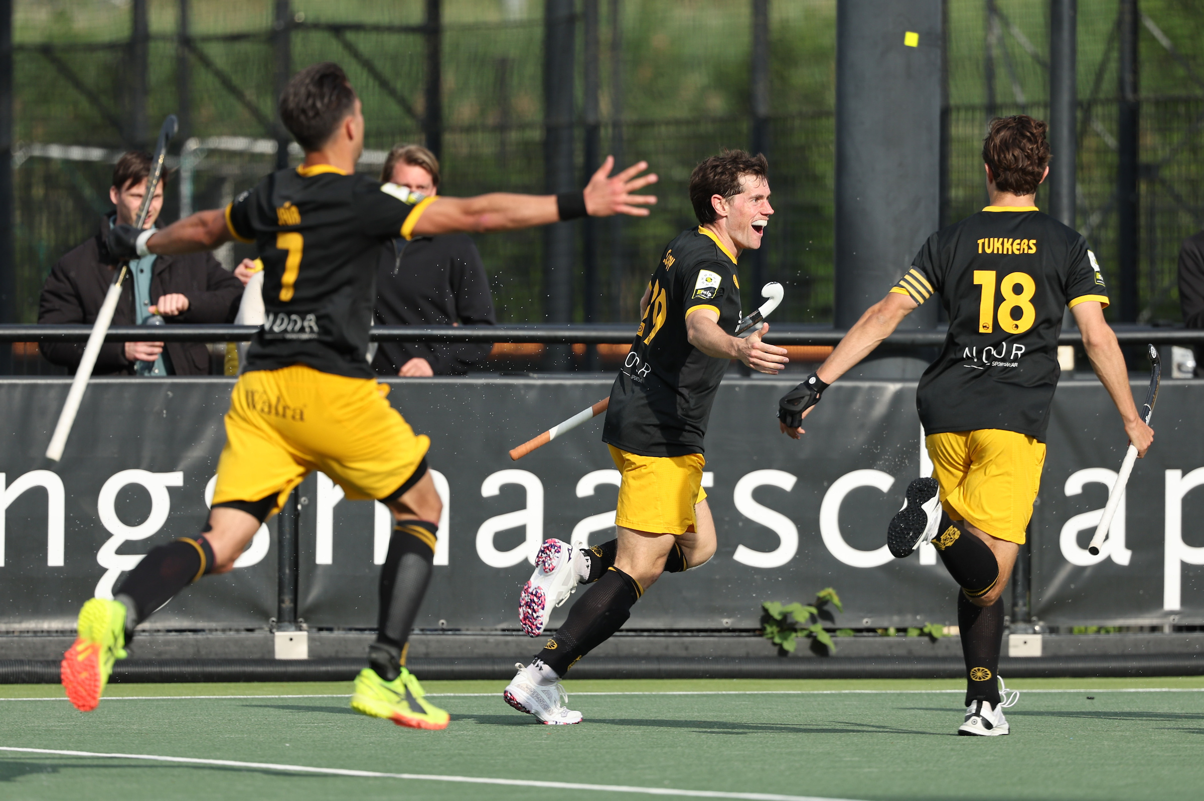 De mannen van Amsterdam staan voor het eerst in zeven jaar weer in de finale van de play-offs. De ploeg uit de hoofdstad hield zondag stand tegen Den Bosch in een heerlijke strijd, die in een 3-3 gelijkspel eindigde. Dat resultaat was genoeg na het heenduel dat Amsterdam met 3-2 won. In de eindstrijd staat de 21-voudig kampioen tegenover Kampong, dat eerder op de dag weer afrekende met Bloemendaal. De eerste finalewedstrijd wordt aanstaande zondag gespeeld.
