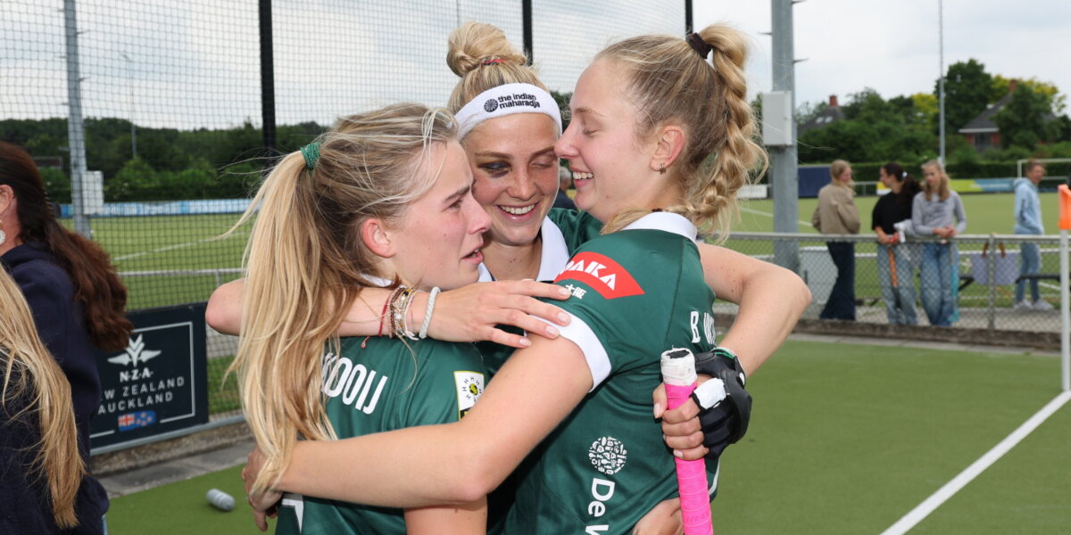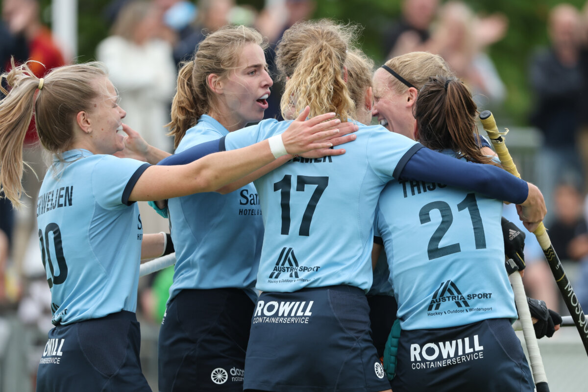 ‘We mogen trots zijn dat we binnen 24 uur zo’n 4-1-nederlaag hebben omgebogen’, zei aanvaller Tessa Verweijen. ‘We gingen er vanaf seconde één vol op. Het eerste kwart vlogen we erin. We hebben thuis alleen van Leonidas verloren dit seizoen, dus we hadden vertrouwen. Natuurlijk is het zuur als je er dan zó dichtbij bent. Maar onze coach zei al: morgen kijken we hier met een goed gevoel op terug.’