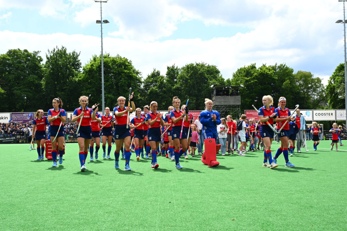 De speelsters van SCHC bedanken de 1.300 toeschouwers na de 1-1 tegen Pinoké. Foto: Rob Römer.