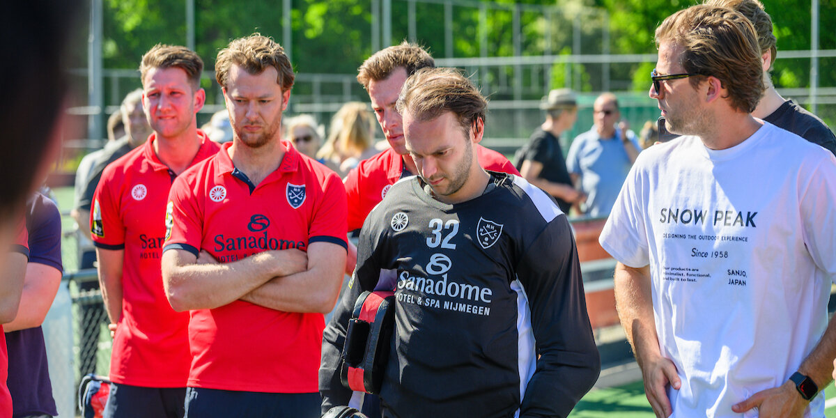 Het lukt hem al om verder te kijken dan die teleurstellende laatste dag van zijn loopbaan. ‘Want later ben je heel blij dat je hierbij was. Veertien jaar Heren 1 en toch een jaar in de Hoofdklasse. Toen ik begon speelden we middenmoot Overgangsklasse (toen het tweede niveau). Trainden we twee keer per week. Na een paar jaar haalden we ineens de play-offs. Toen wisten we: misschien is er wel meer te behalen met ons clubje.’