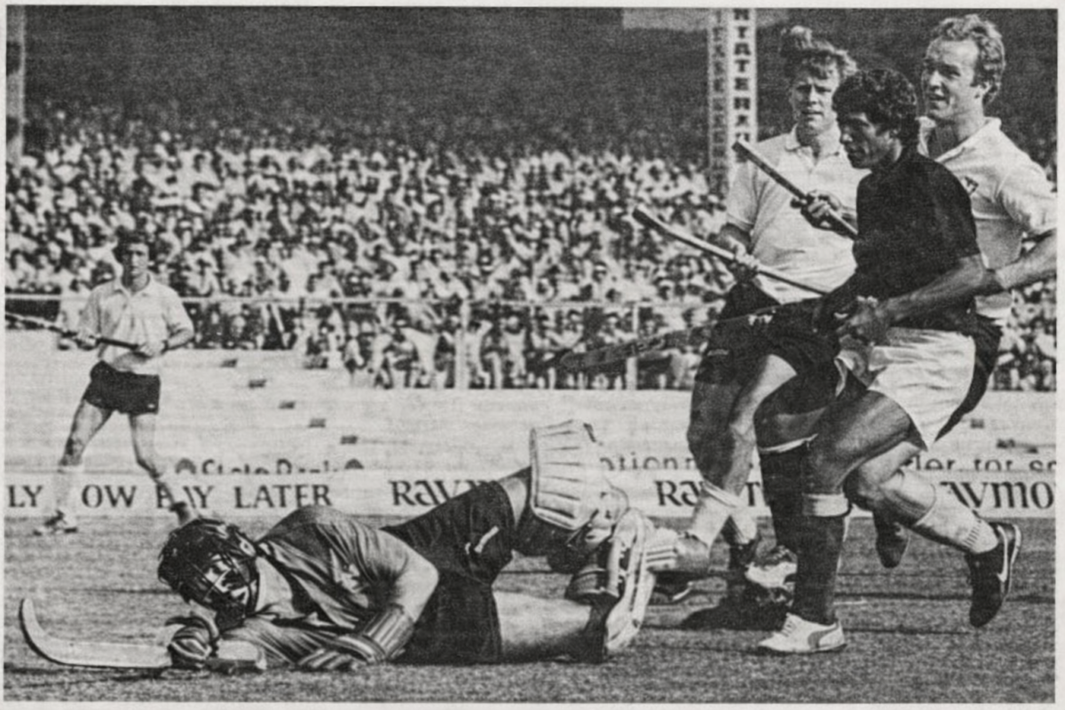 Beeld uit de finale Pakistan – West-Duitsland, de laatste WK-wedstrijd op natuurgras. Foto: ANP