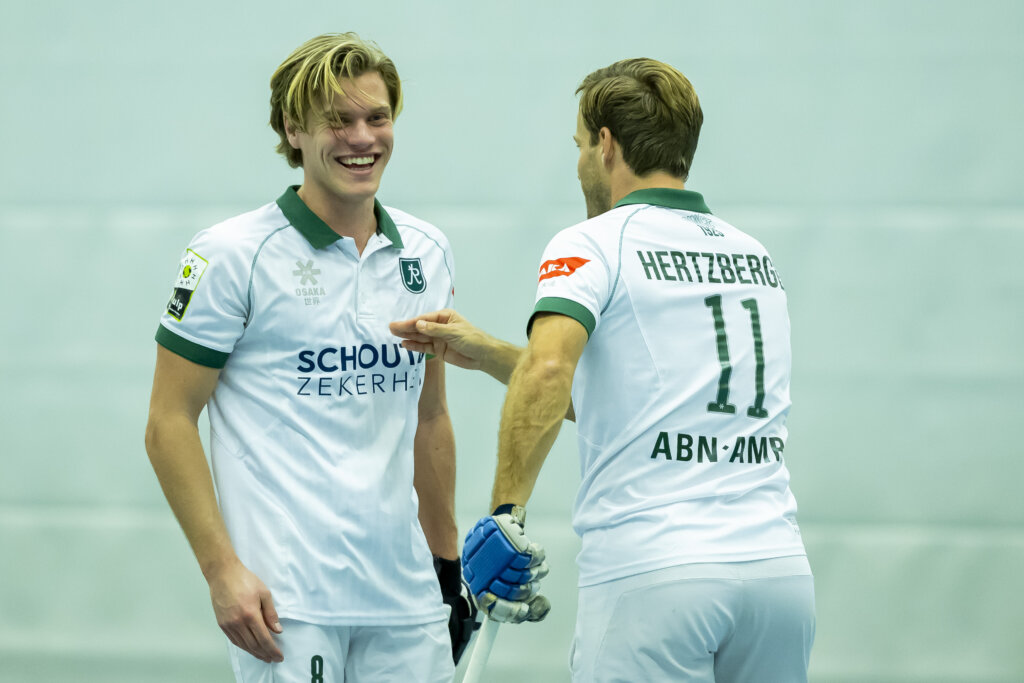 De inderdaad vrij jonge selectie kreeg er zaterdag een brok routine bij. Want als een superman zonder cape was-ie er weer. Jeroen Hertzberger. Fit en bevlogen als altijd. De topscorer aller tijden van de Hoofdklasse (veld, voor de duidelijkheid) pikte een goaltje mee en schoot zelfs nog even heerlijk fanatiek uit zijn slof richting de scheidsrechter, toen tot Rotterdams onbegrip de tijd werd stopgezet.
