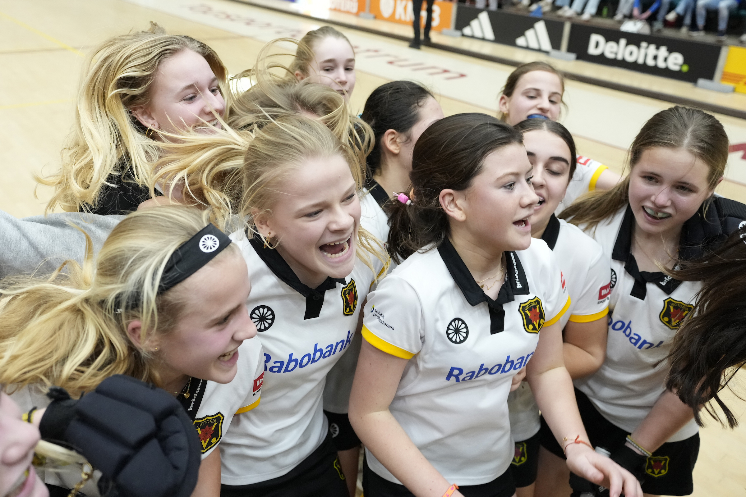 Tijdens het hele interview lacht Hamers breeduit. Logisch, gezien haar optreden en de weg ernaartoe. Exact een jaar geleden won Victoria MO14-1 ook de zaaltitel, maar toen zat de aanvalster in felgeel op de tribune. Als een van de grootste supporters. Hamers speelde pas een paar maanden bij haar nieuwe club. Ze begon haar eerste hockeyjaren bij Ommoord, maar wilde het graag op een hoger niveau proberen.