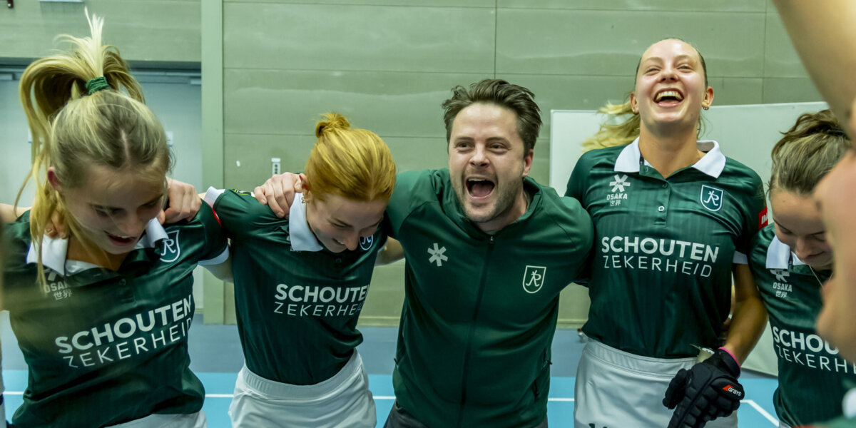 Hij wist toen dat hij voor het eerst vader zou worden. Wilde en moest de tijd daarvoor nemen. En misschien was een frisse wind bij Dames 1 na al die jaren ook niet zo gek. Het leidde ertoe dat Vervoort zijn rustigste hockeyjaren in tijden meemaakte. ‘Ik kwam nog wel kijken hoor’, zegt Vervoort, vlak na het bereiken van de halve finaleplek. Hij staat in een groot materiaalhok, naast de zaal waar zijn ploeg de beslissende wedstrijd tegen Victoria (2-1) won. Om hem heen liggen opgestapelde gymtoestellen. Tussen de turnmatten en korfbalpalen blikt Vervoort terug op de afgelopen twee jaar.